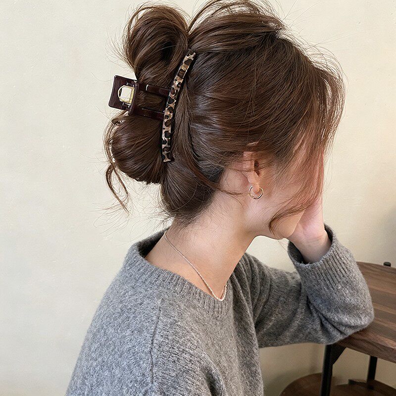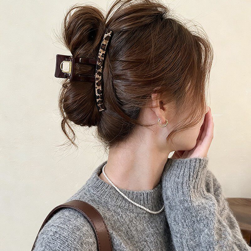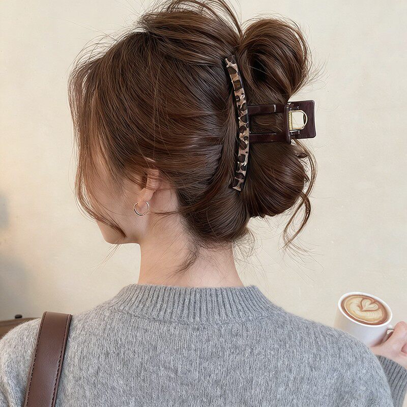 法式豹纹方形抓夹女高级感2025新款鲨鱼夹发夹后脑勺盘发头饰发卡