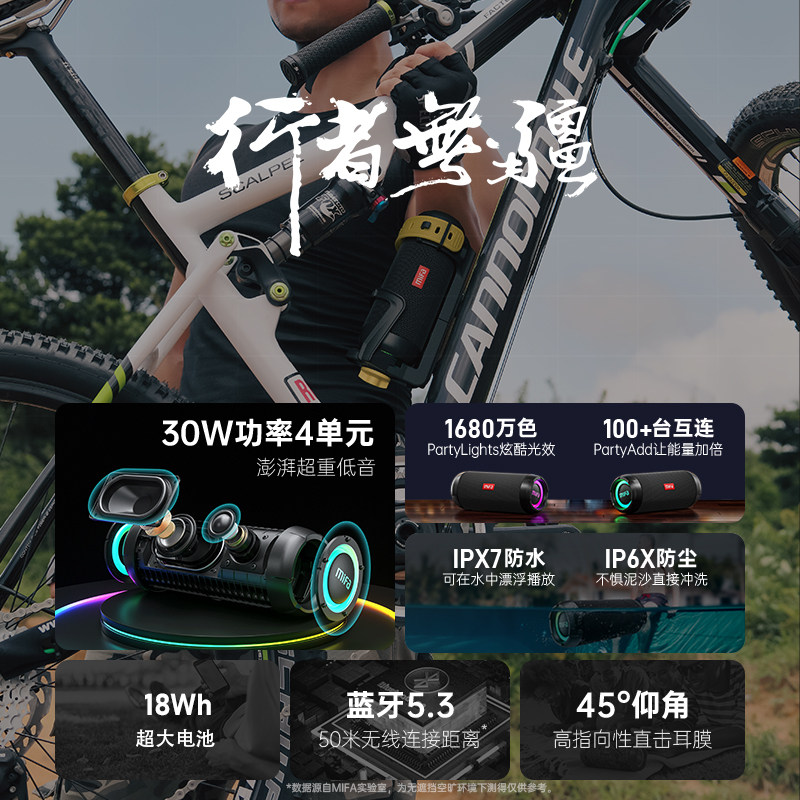 MIFA蓝牙音响户外高音质大音量自行车骑行便携式插卡小音箱低音炮