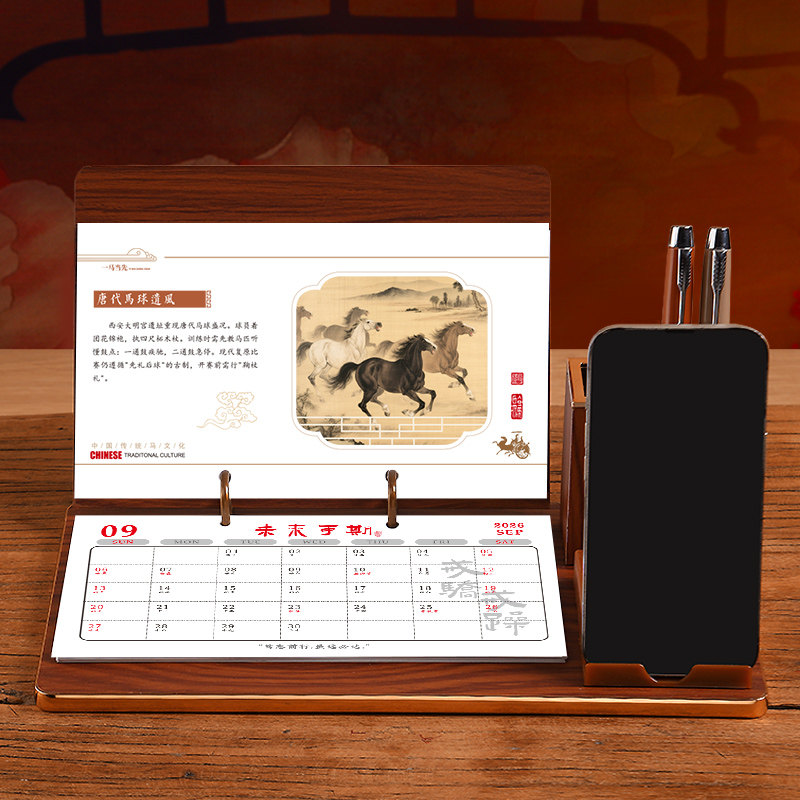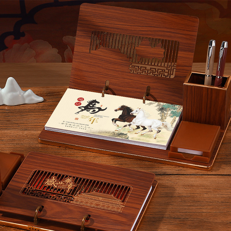定制台历礼品2026年新款办公桌面商务高档马年周历台座木质多功能笔筒日历公司企业年会伴手礼定做广告宣传语