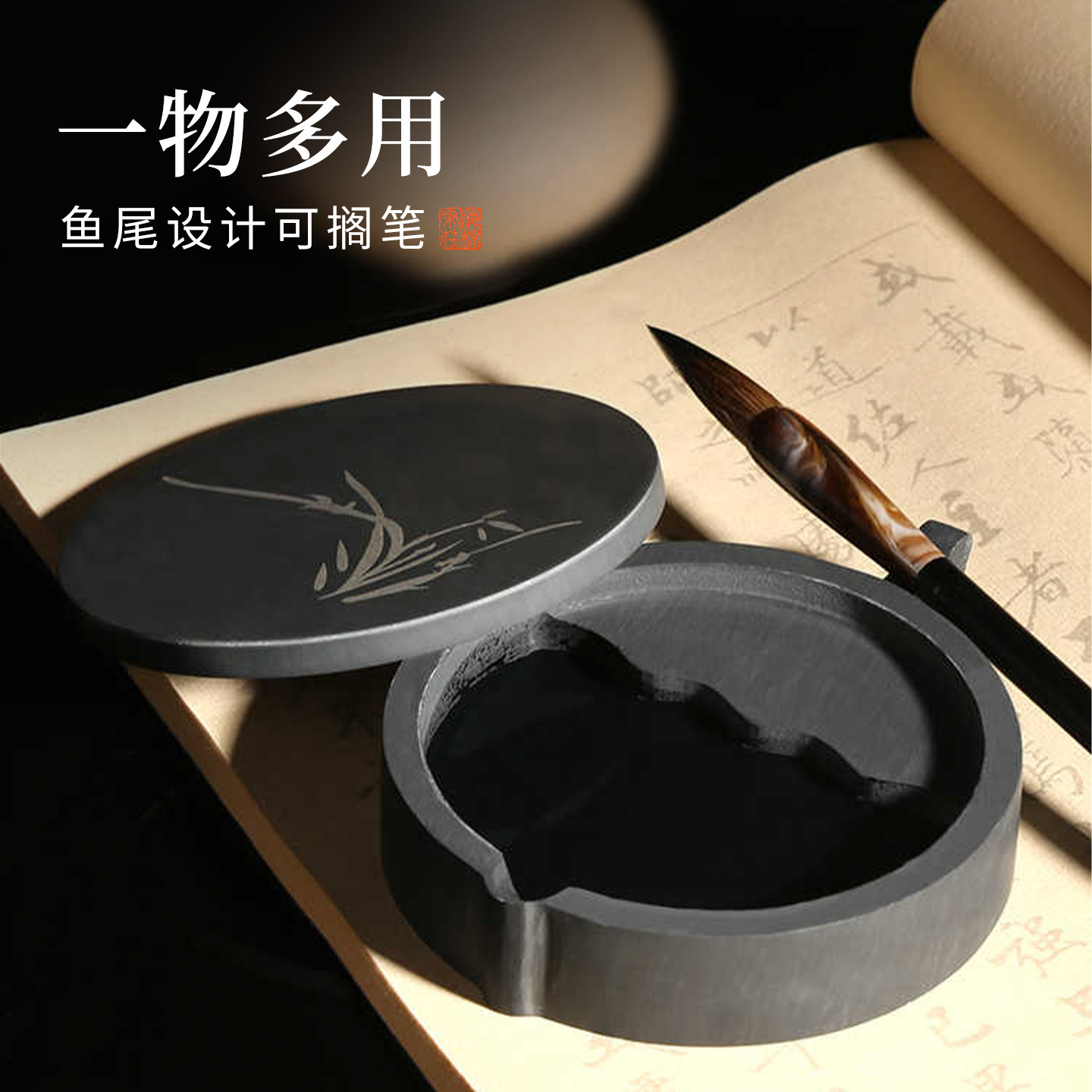 砚台带盖 天然原石 密封性好 发墨快