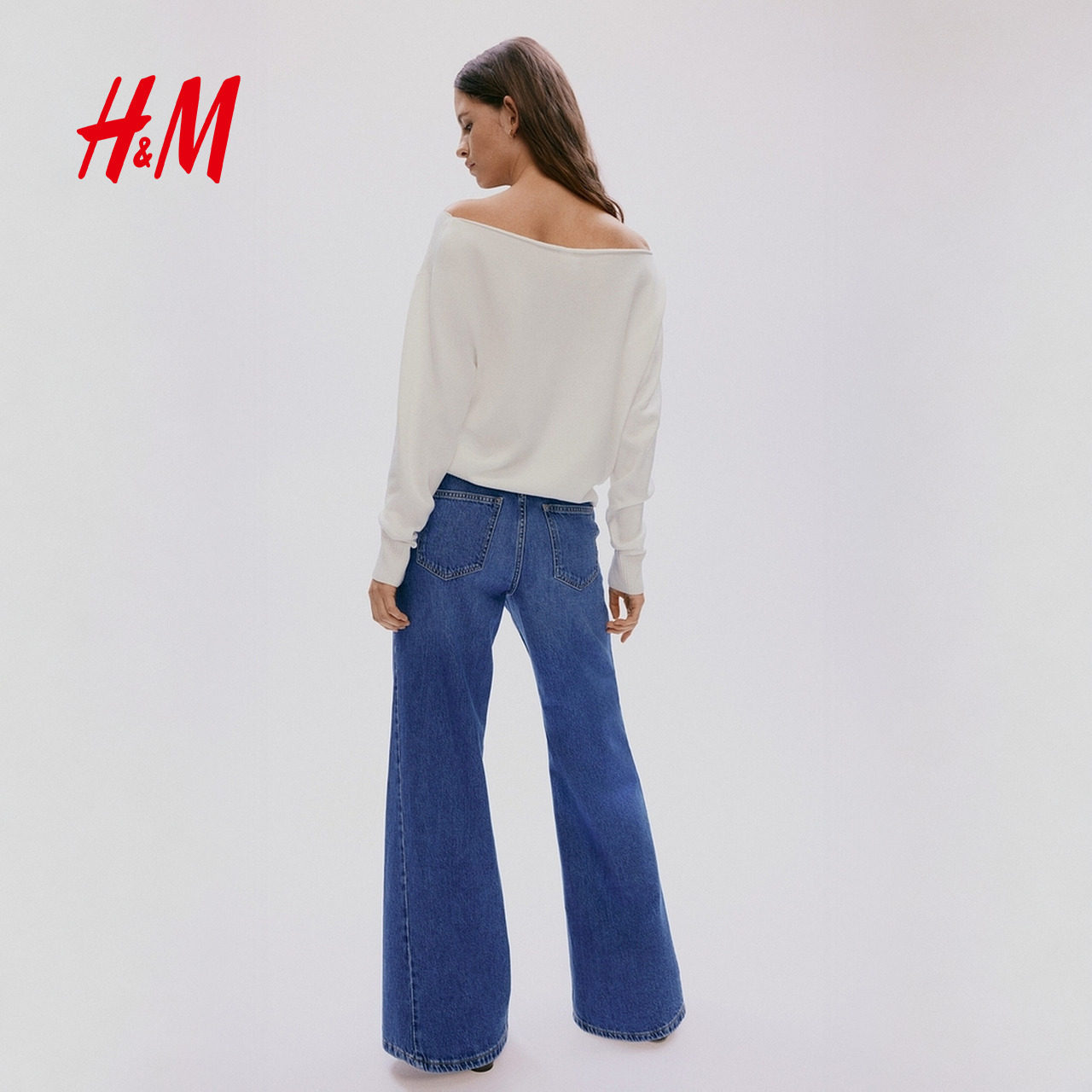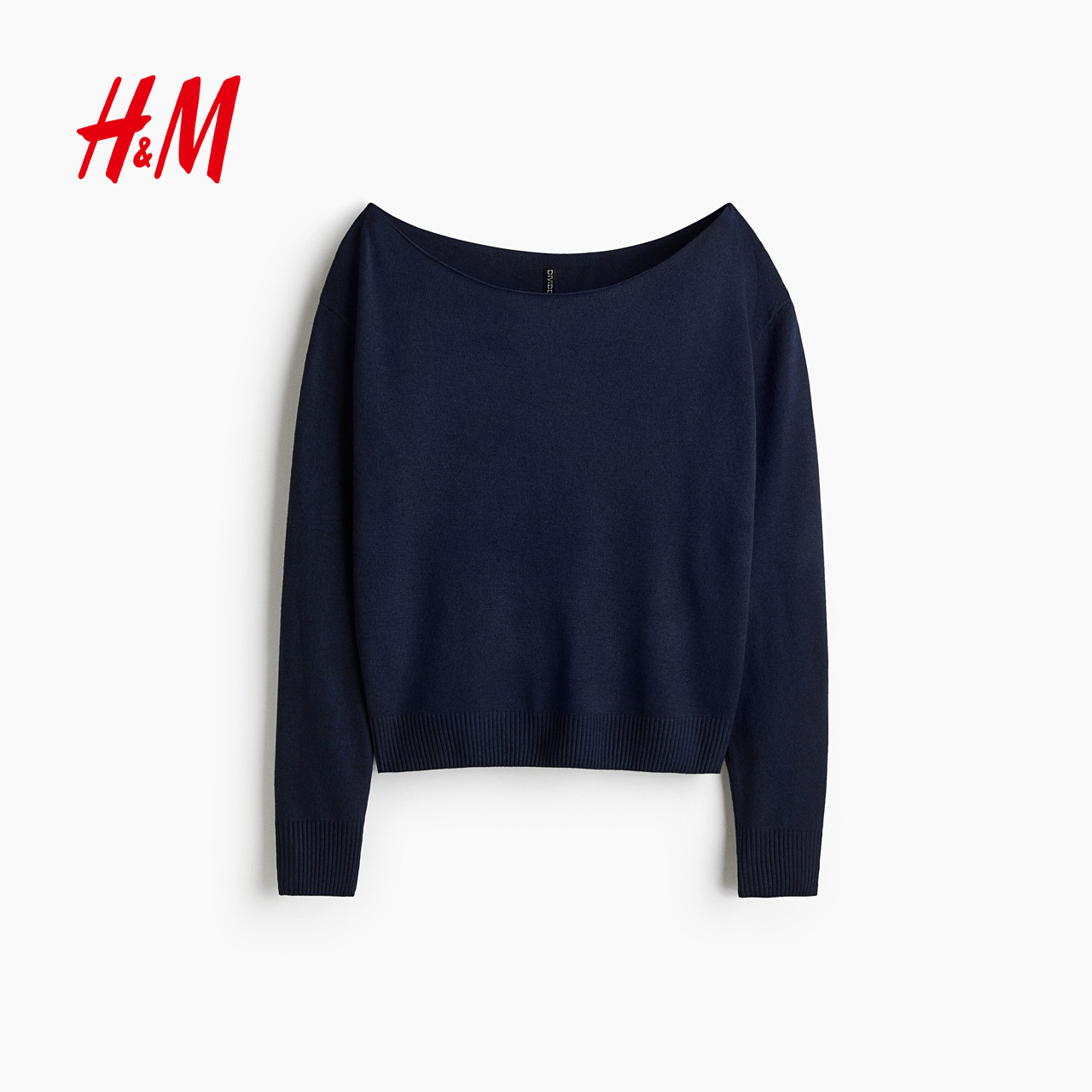 HM女装毛针织衫冬季露肩毛衣落肩宽松长袖上衣1302636
