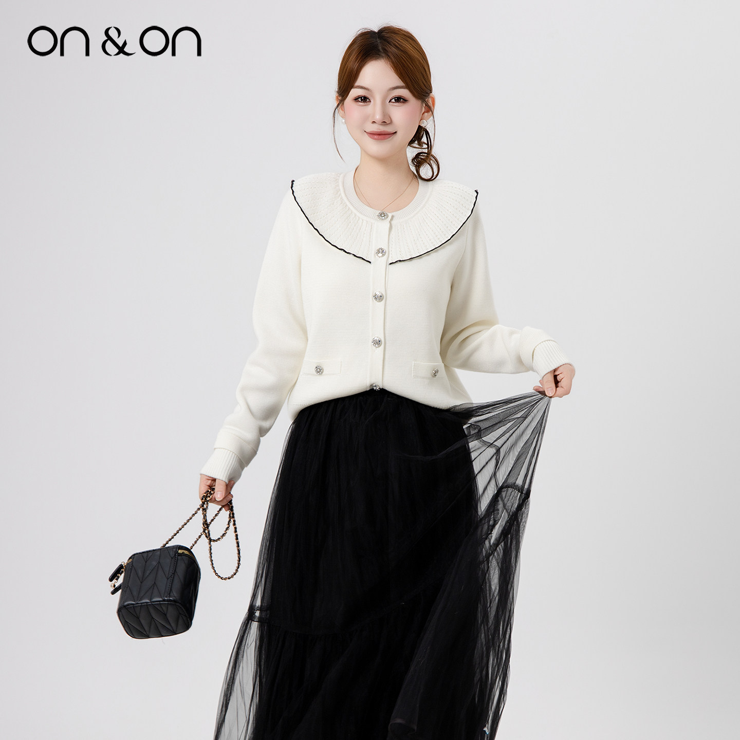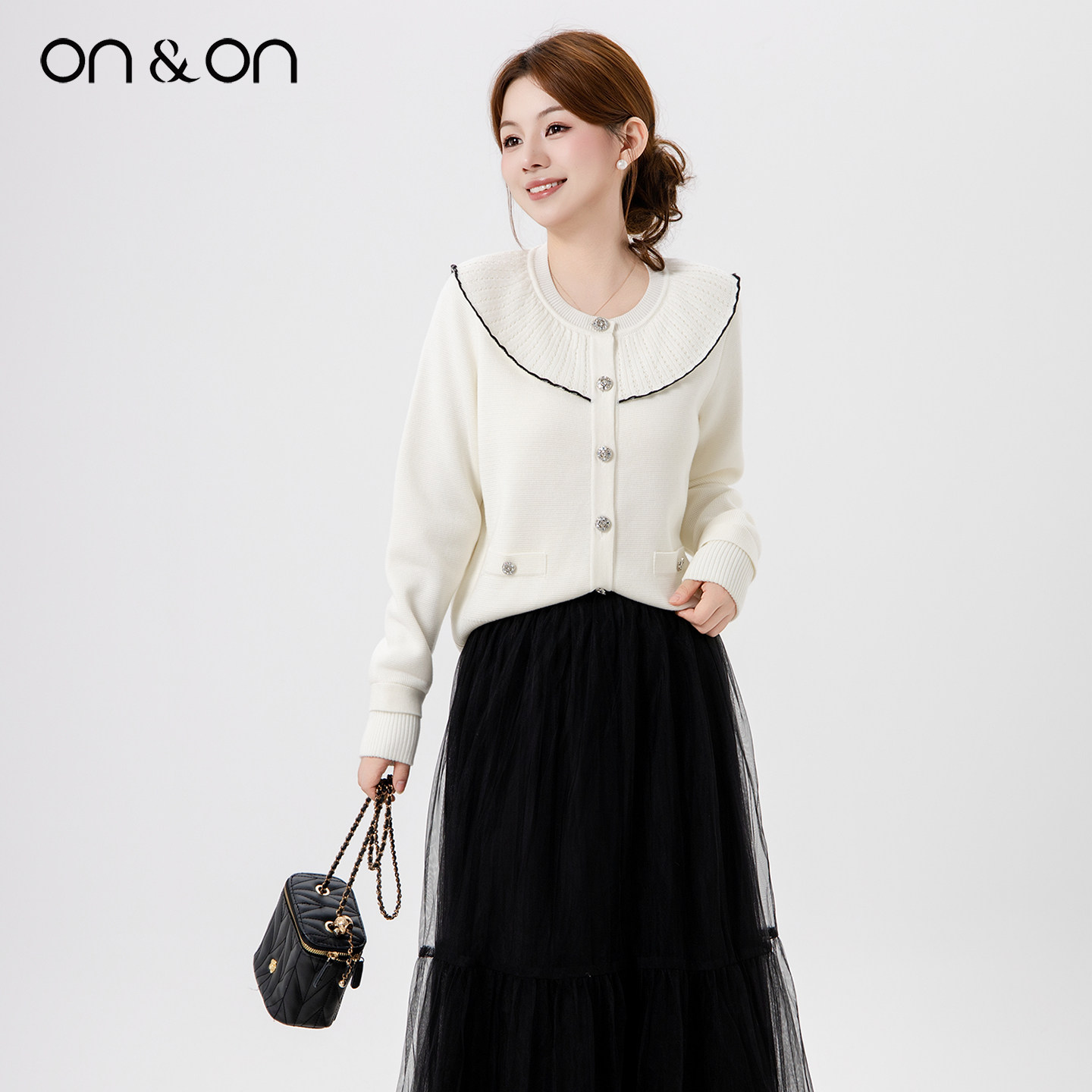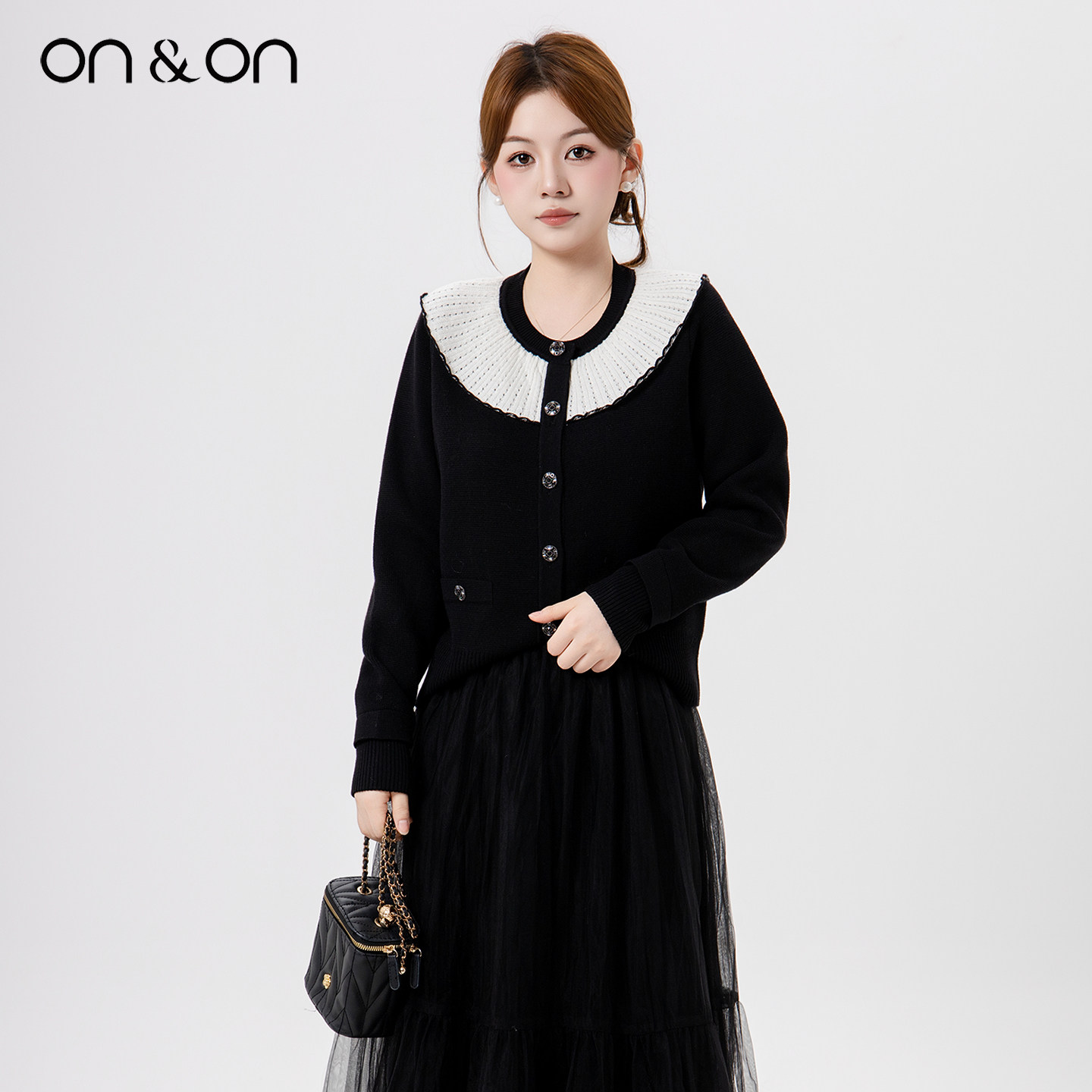 ON&ON/安乃安2026春季新款韩系圆领撞色荷叶领甜美减龄针织开衫