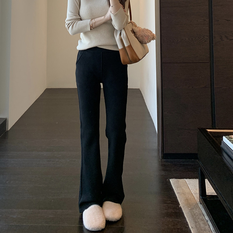 法式设计感马体裤女秋冬加绒加厚小黑裤高腰大码显瘦微喇裤喇叭裤