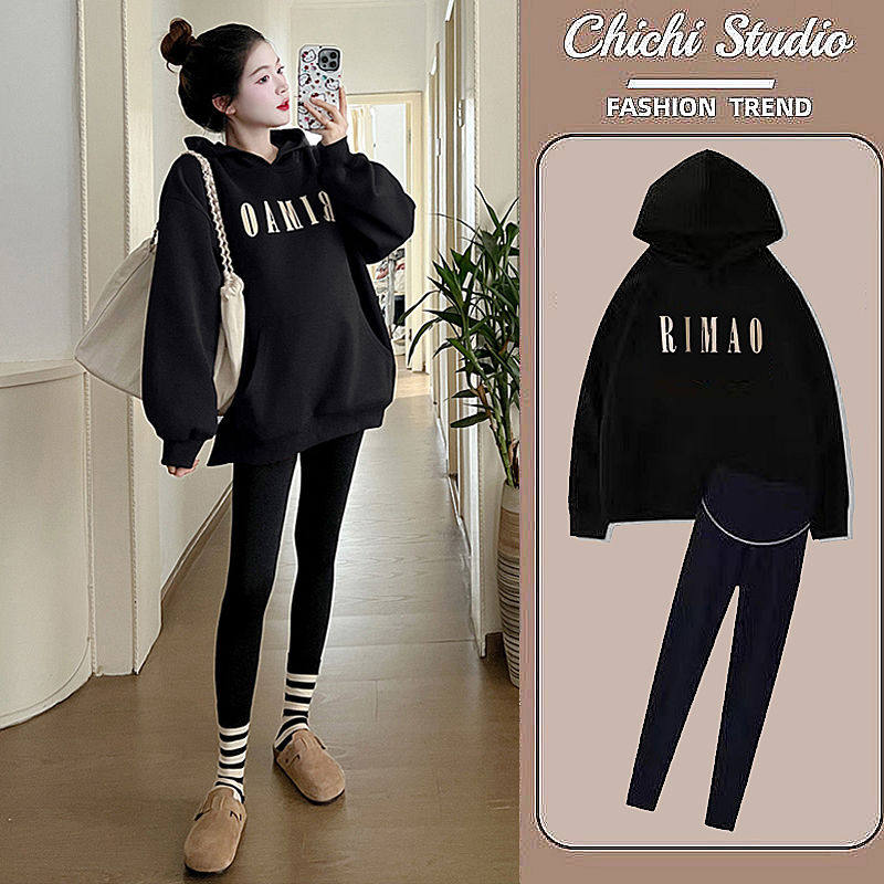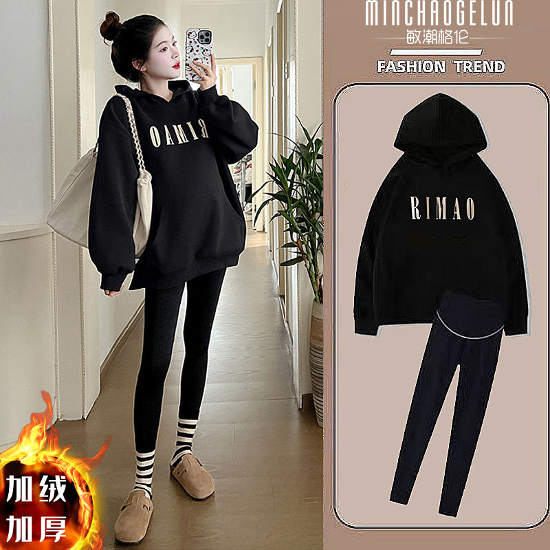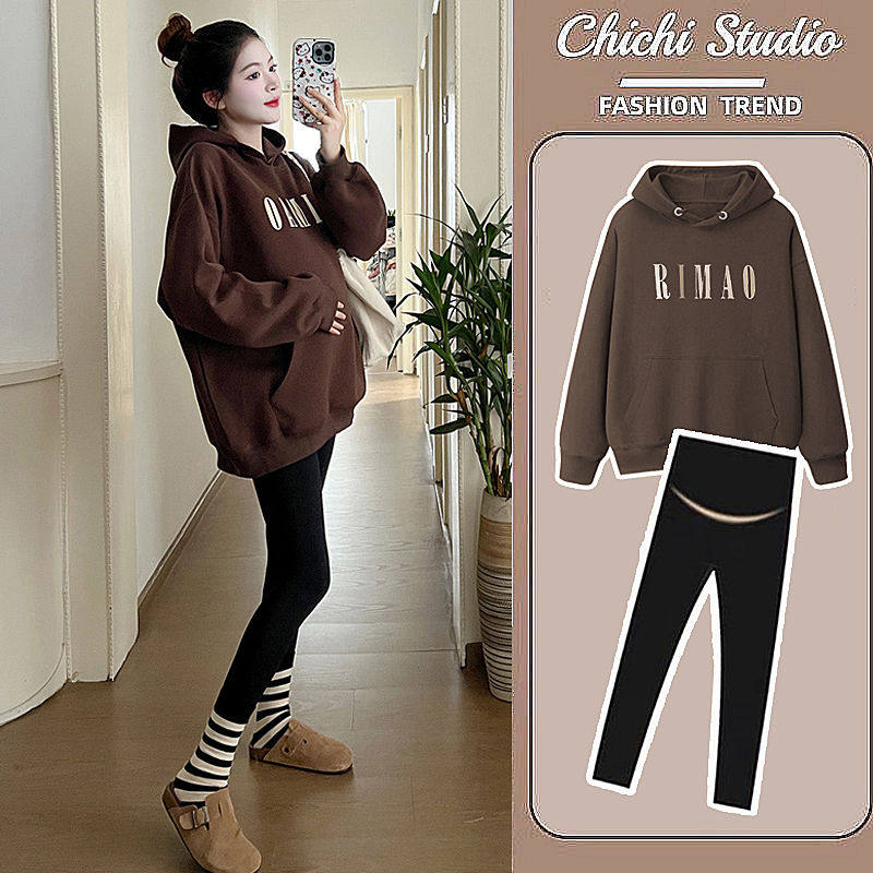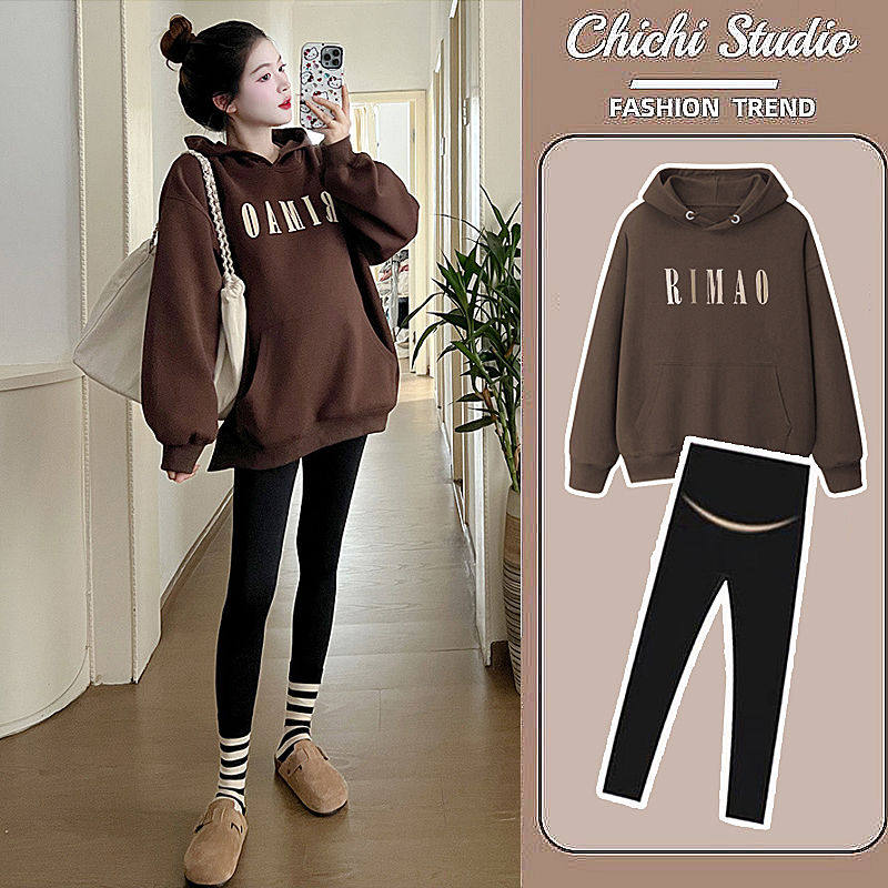 新款秋冬季穿搭日系连帽孕妇棉卫衣女大码小众慵懒焦糖色上衣