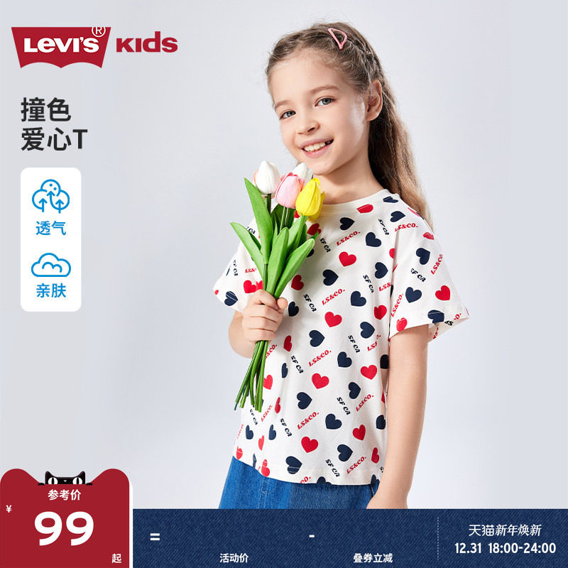 Levis李维斯童装女童短袖T恤2025夏装新款儿童纯棉运动休闲上衣
