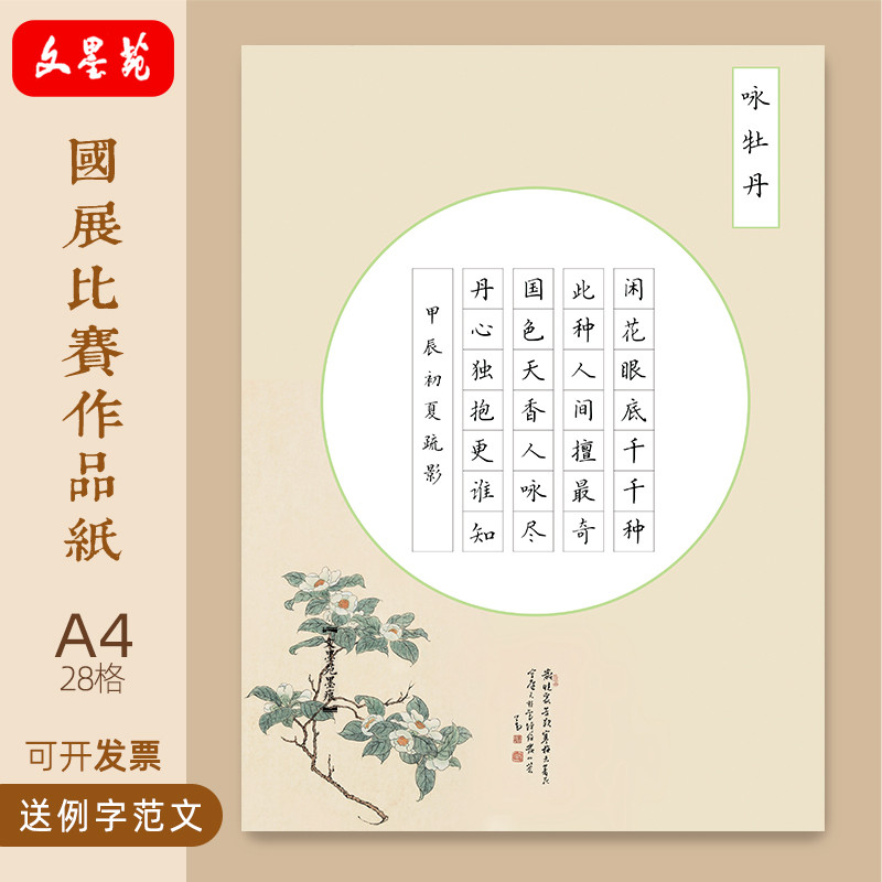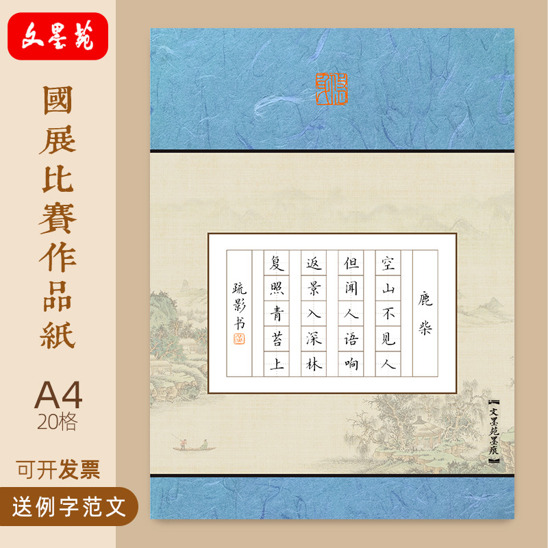 文墨苑A4古风硬笔书法作品纸五言20田字格低年级学生专用春晓古诗模板120g加厚竹浆纸16k比赛作品纸大唐杯