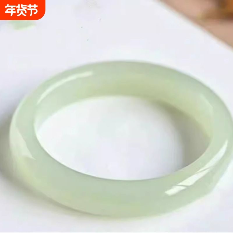 爆款平替新疆仿和田玉手镯青白玉晴水圆条送妈妈女友礼物珠宝玉石