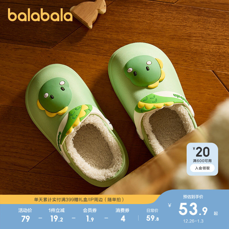 巴拉巴拉儿童棉拖鞋男童女童冬季室内卡通加绒加厚防水宝宝拖鞋