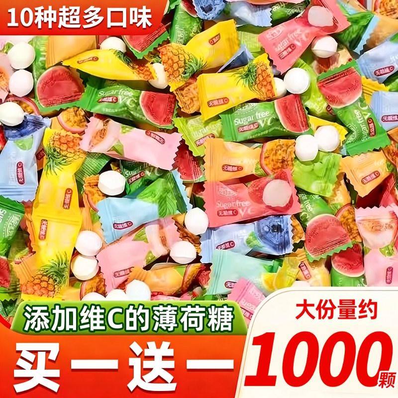 网红糖果薄荷糖清凉维c无糖清新口气花香糖混合多口味小零食批发