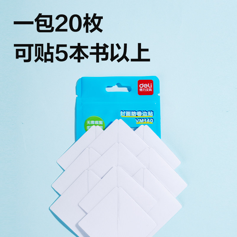 得力书角保护贴书本内页防卷边贴纸书皮书角保护贴自粘课本作业本防折角神器书本封面内页修复保护贴纸包书膜