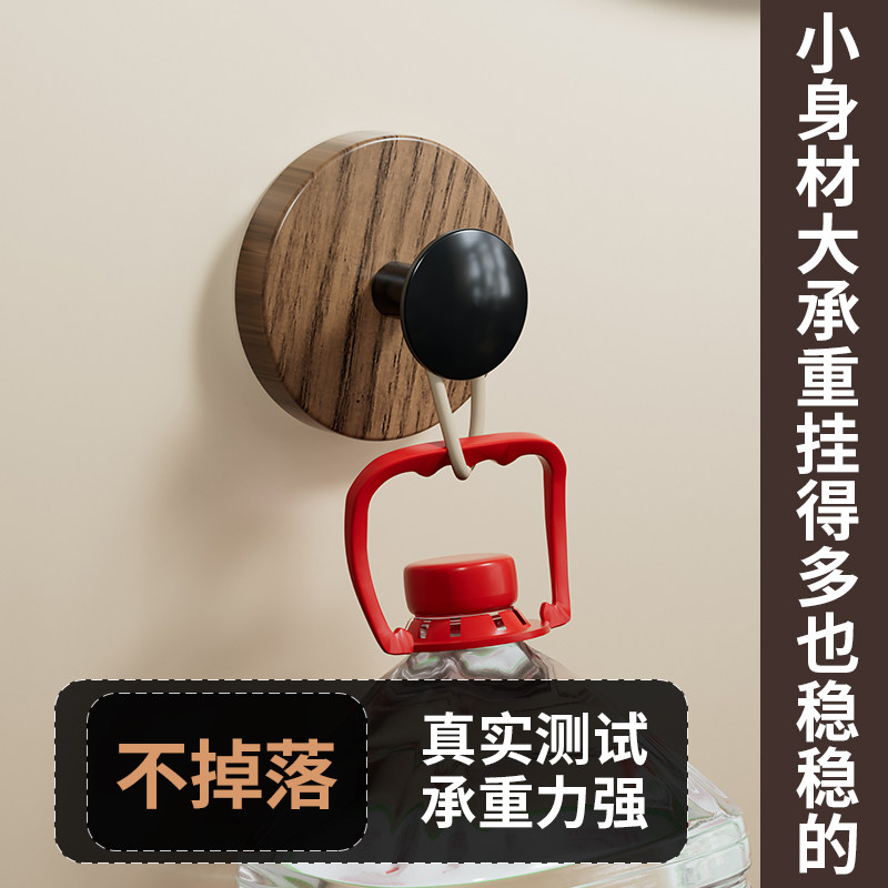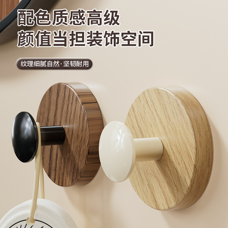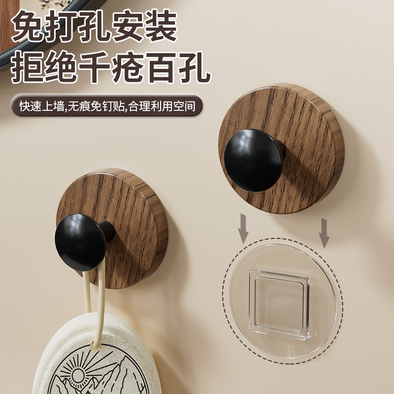 胡桃木纹壁挂挂钩免打孔强力承重粘钩门后厨房卫生间浴室挂衣钩