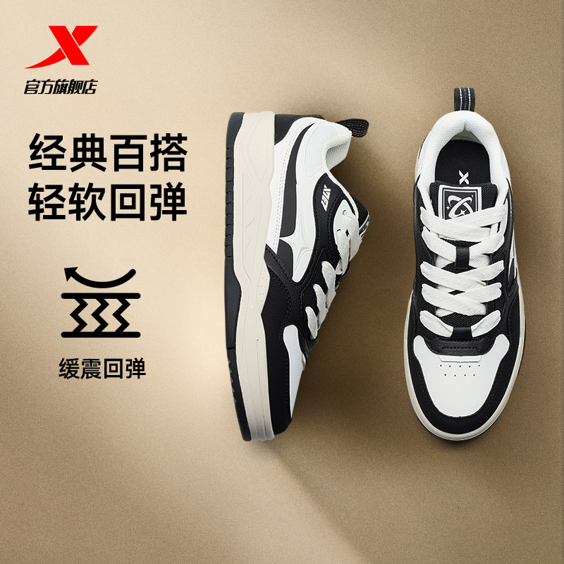 特步征程丨板鞋男鞋冬季新款低帮黑白休闲鞋轻便百搭男士运动鞋子