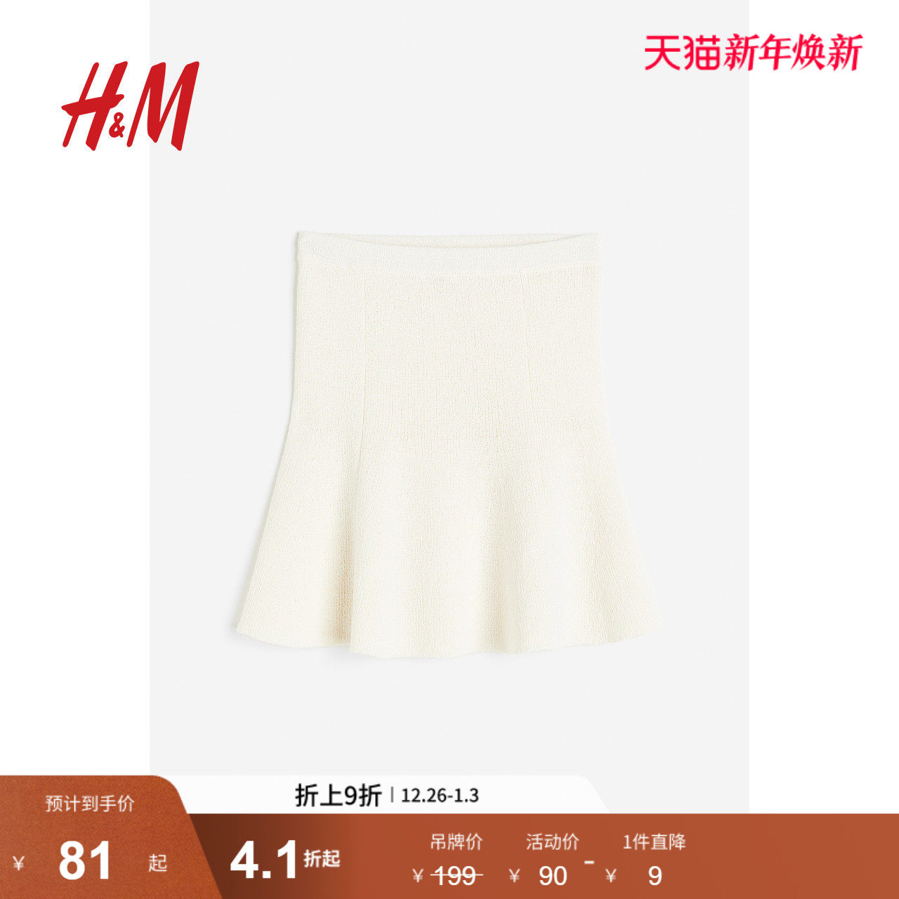 HM女装半身裙冬季柔软简约气质温柔针织松紧短裙1195357