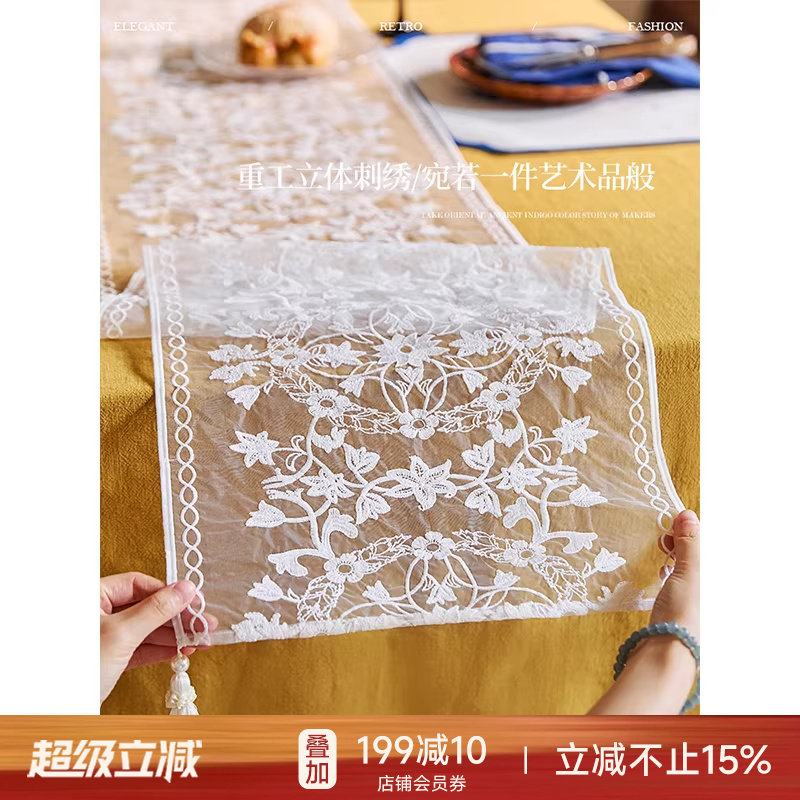 蜡笔派菲奥娜桌旗蕾丝法式氛围感轻奢高端现代简约茶几巾欧式盖布