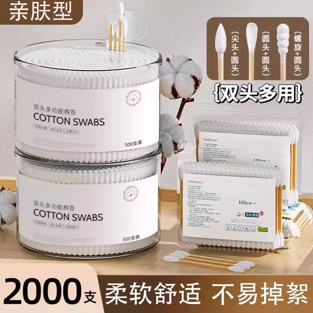 双头棉签掏耳朵专用化妆一次性卫生棉棒尖头挖耳勺棉花棒盒装卸妆