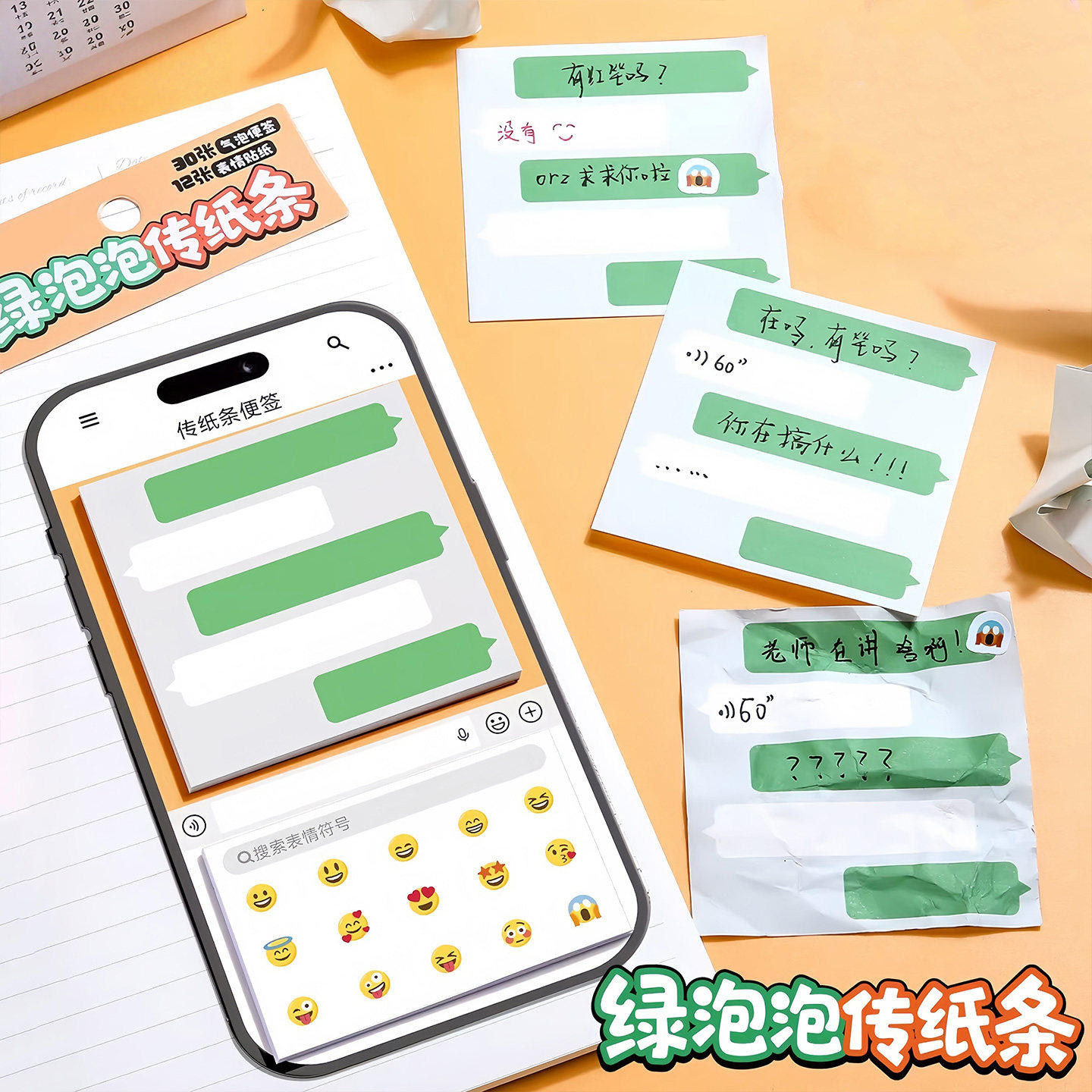 手机绿泡泡聊天便签贴纸创意学生搞怪纸条Emoji表情ins聊天便利贴
