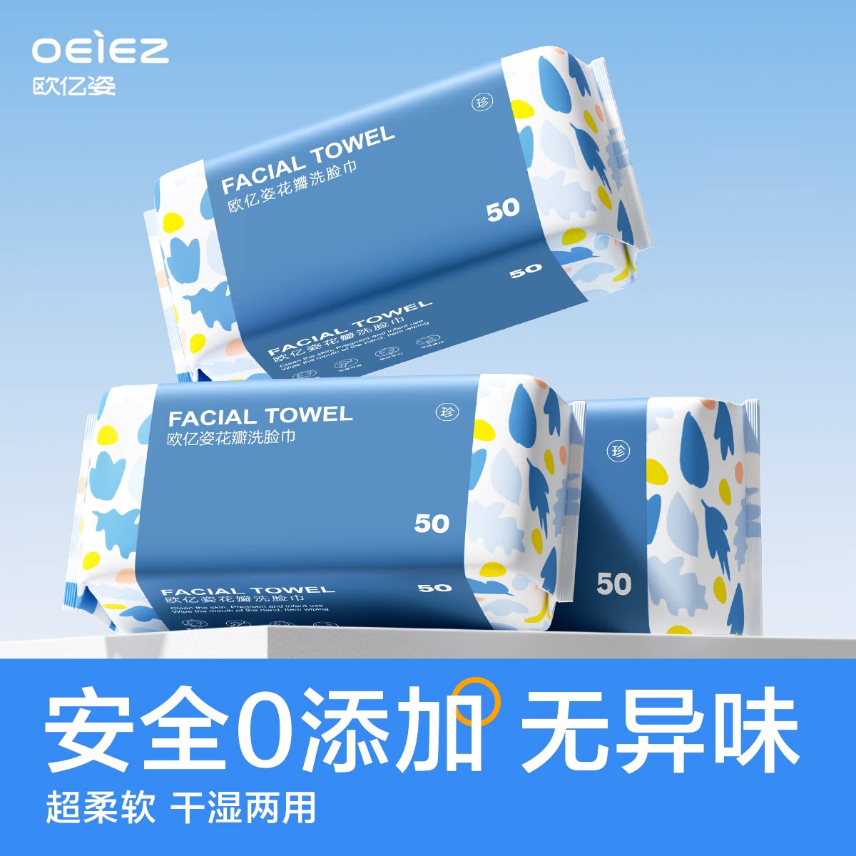欧亿姿洗脸巾一次性擦脸洗面洁面卸妆巾50抽便携旅行装