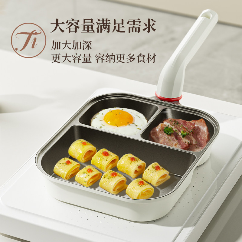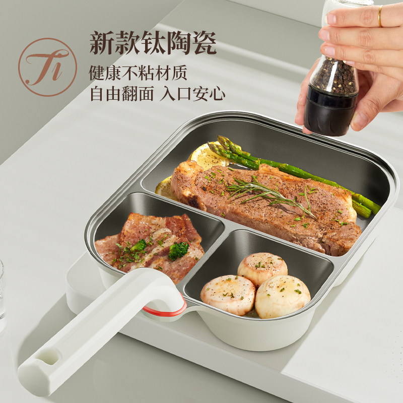 梦创钛陶瓷早餐锅平底锅煎锅鸡蛋锅一四孔不粘锅家用煎蛋神器燃气