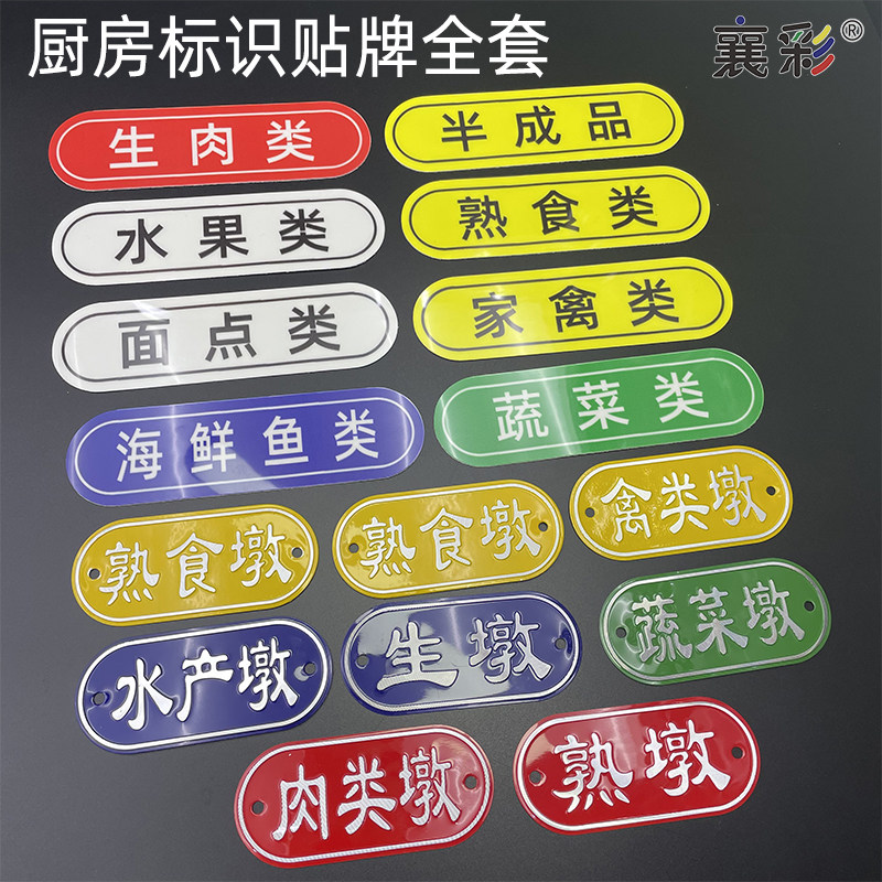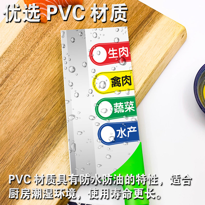 刀具分类标识贴色标贴纸4D厨房管理菜刀蔬菜水产生熟菜墩熟墩标签幼儿园学校食堂饭店餐厅全套标识牌