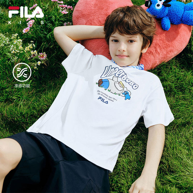 FILA KIDS斐乐童装儿童纯棉短袖T恤夏新款男女童凉感透气半袖上衣