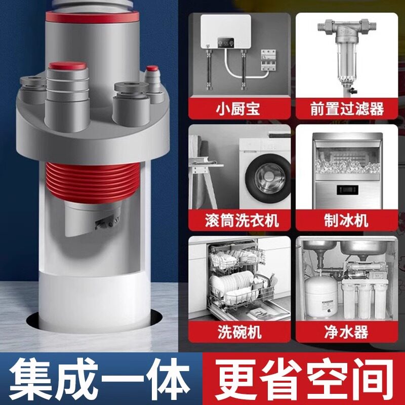 厨房下水管三通洗菜盆洗碗池水槽五通净水器排水管道防返臭分水器