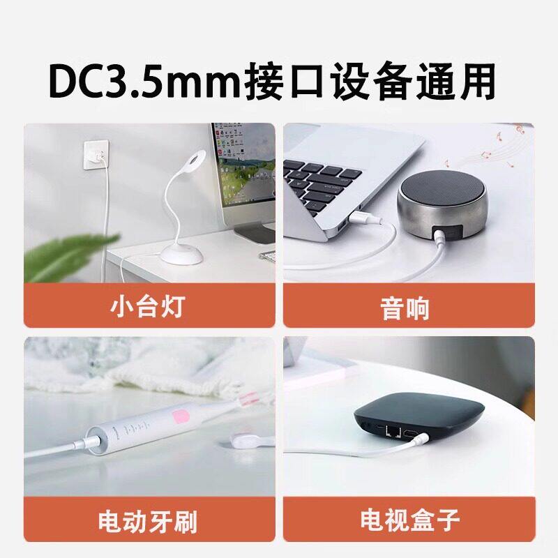 圆孔充电线圆头usb转dc3.5mm通用台灯玩具电源5V电动牙刷小夜灯音响适用于foreo露娜洁面luna洗脸仪mini2
