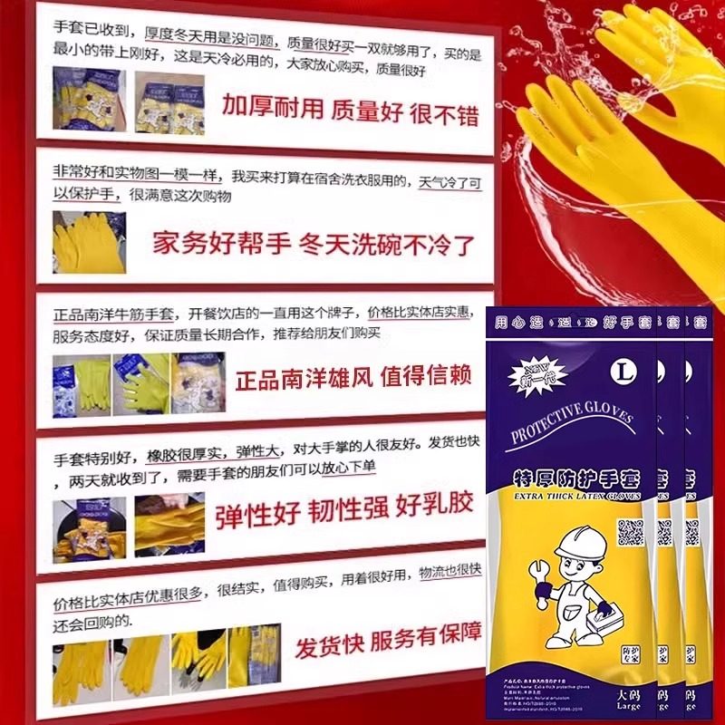 加厚南洋橡胶牛津乳胶手套劳保工作耐磨防水防滑胶皮塑胶洗碗家务