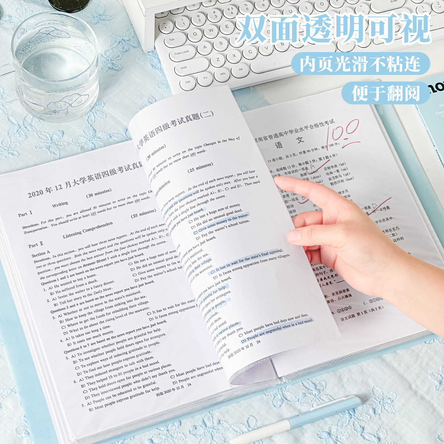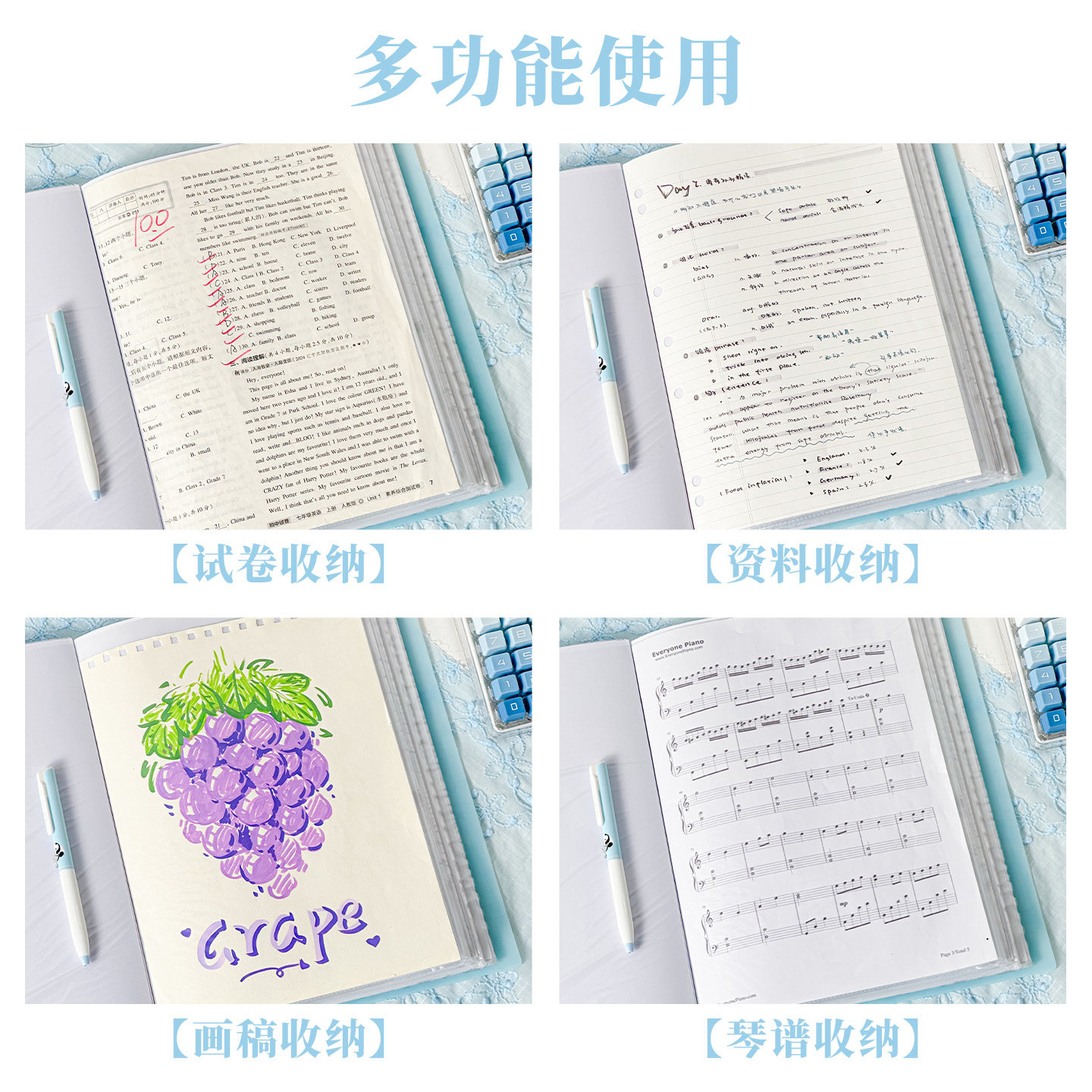 三年二班 文件夹A4插页透明资料册试卷收纳册学生用大容量多功能文件袋学习资料整理资料夹乐谱夹开学必备