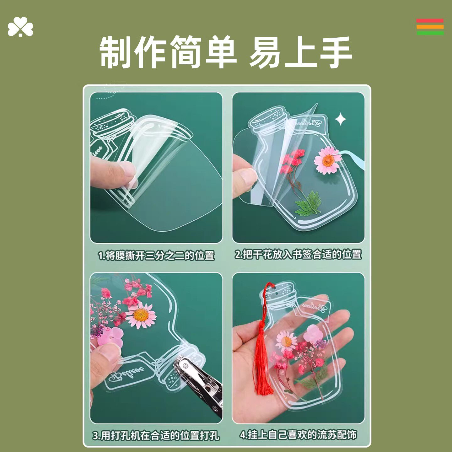 干花书签手工diy材料透明标本瓶子里的春天自制压花幼儿园小学生