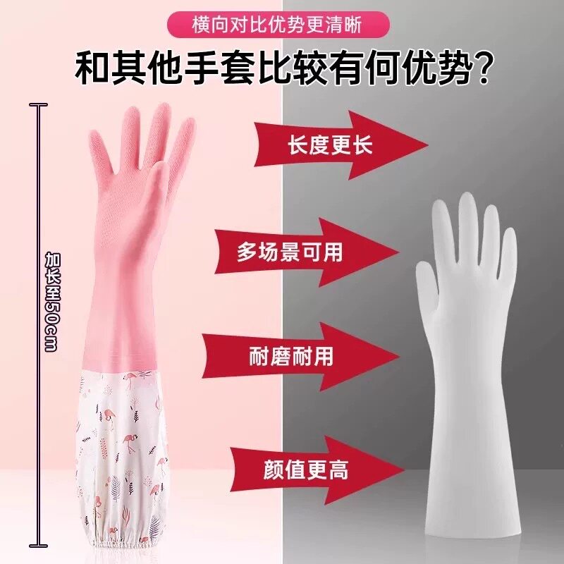 洗碗手套加绒加厚保暖款男女厨房耐用橡胶乳胶皮洗衣加长手套家务
