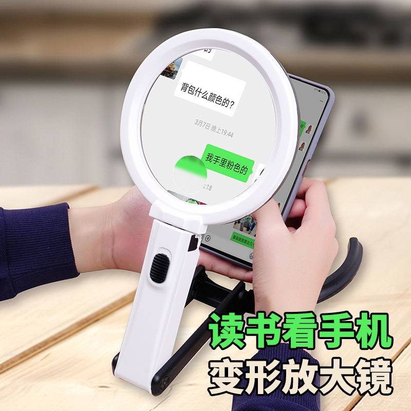 台式维修老人儿童阅读放大镜v高手持折叠10倍清带灯led手机便携式