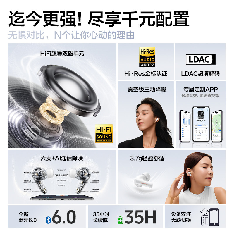 HIFI音质 主动降噪 金标LDAC 立体空间音效