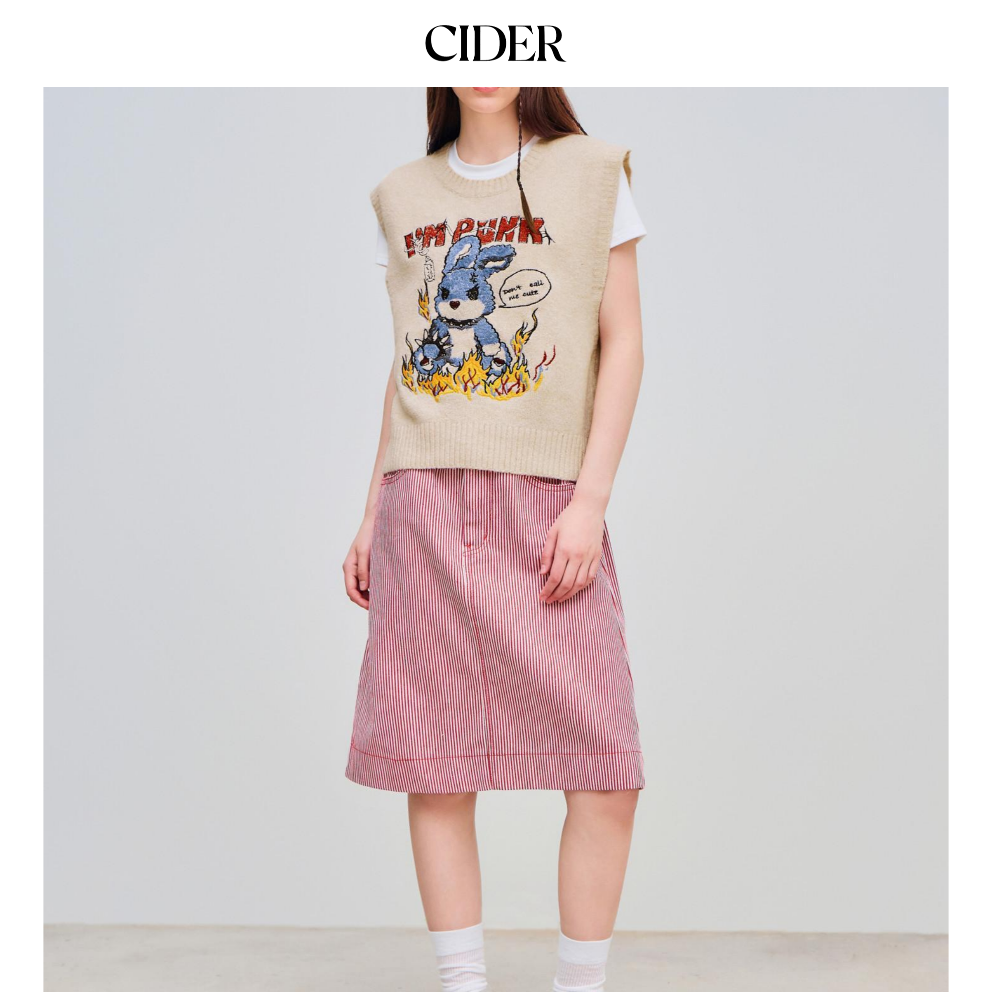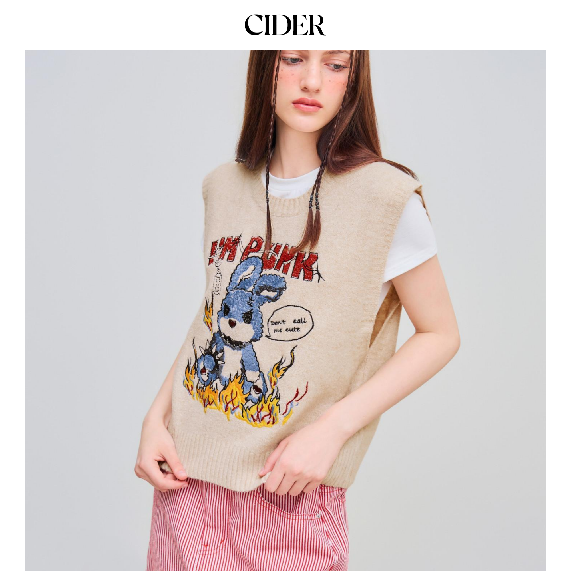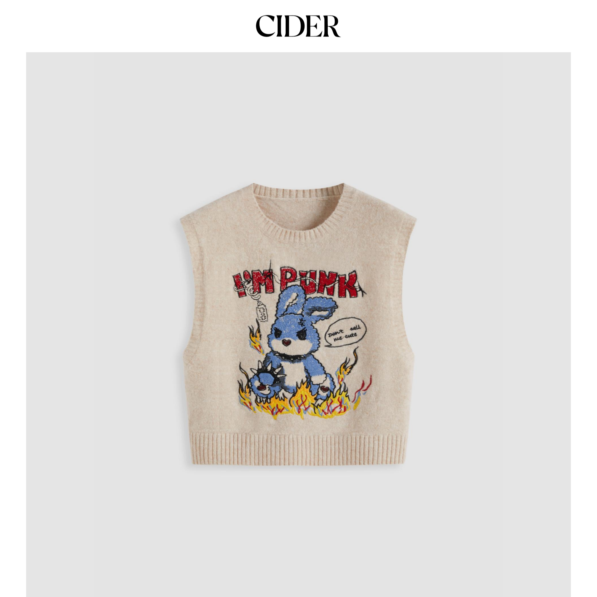 【明星同款】CIDER 春秋新品朋克风针织兔子刺绣背心110253452