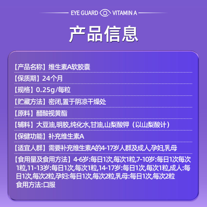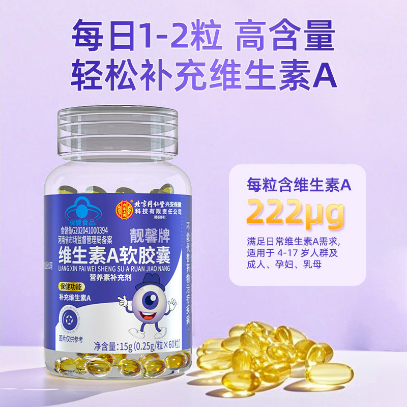 北京同仁堂维生素A儿童青少年胡萝卜素护眼成人亮肤皮肤干燥60粒