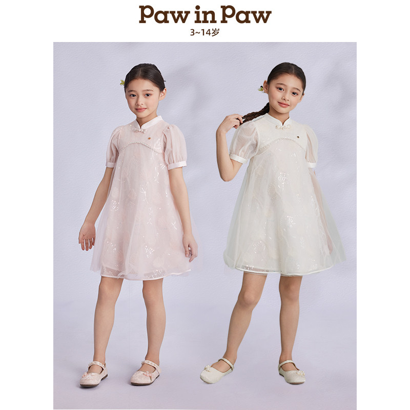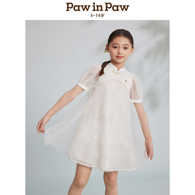 PawinPaw卡通小熊童装春夏新女童国风旗袍连衣裙