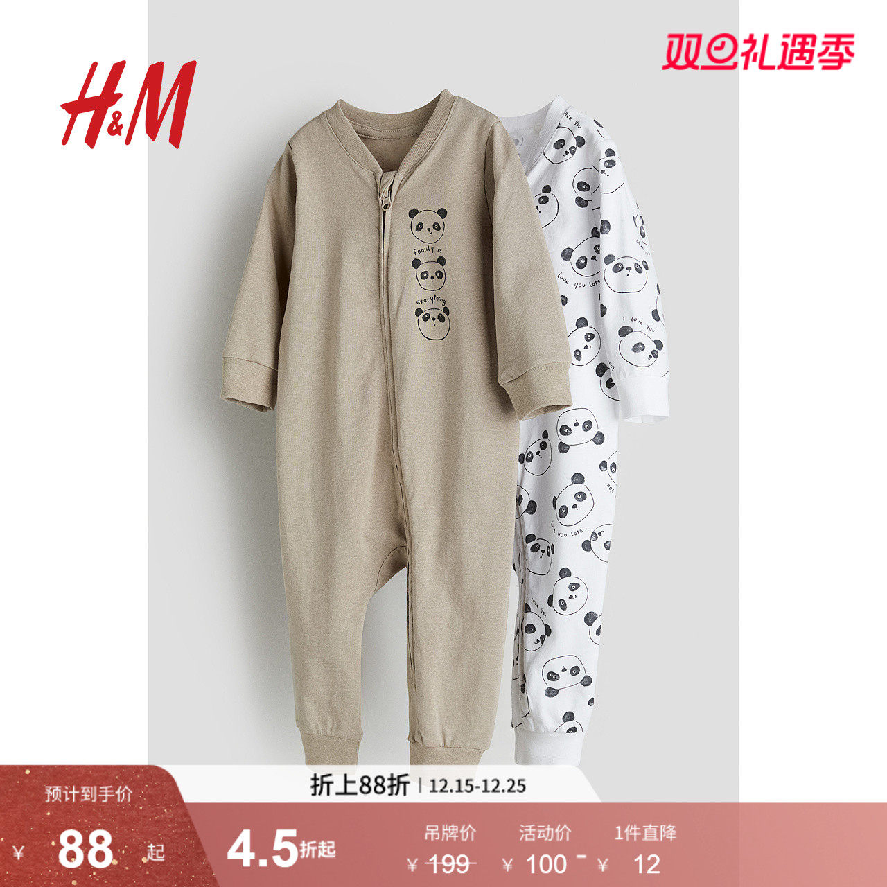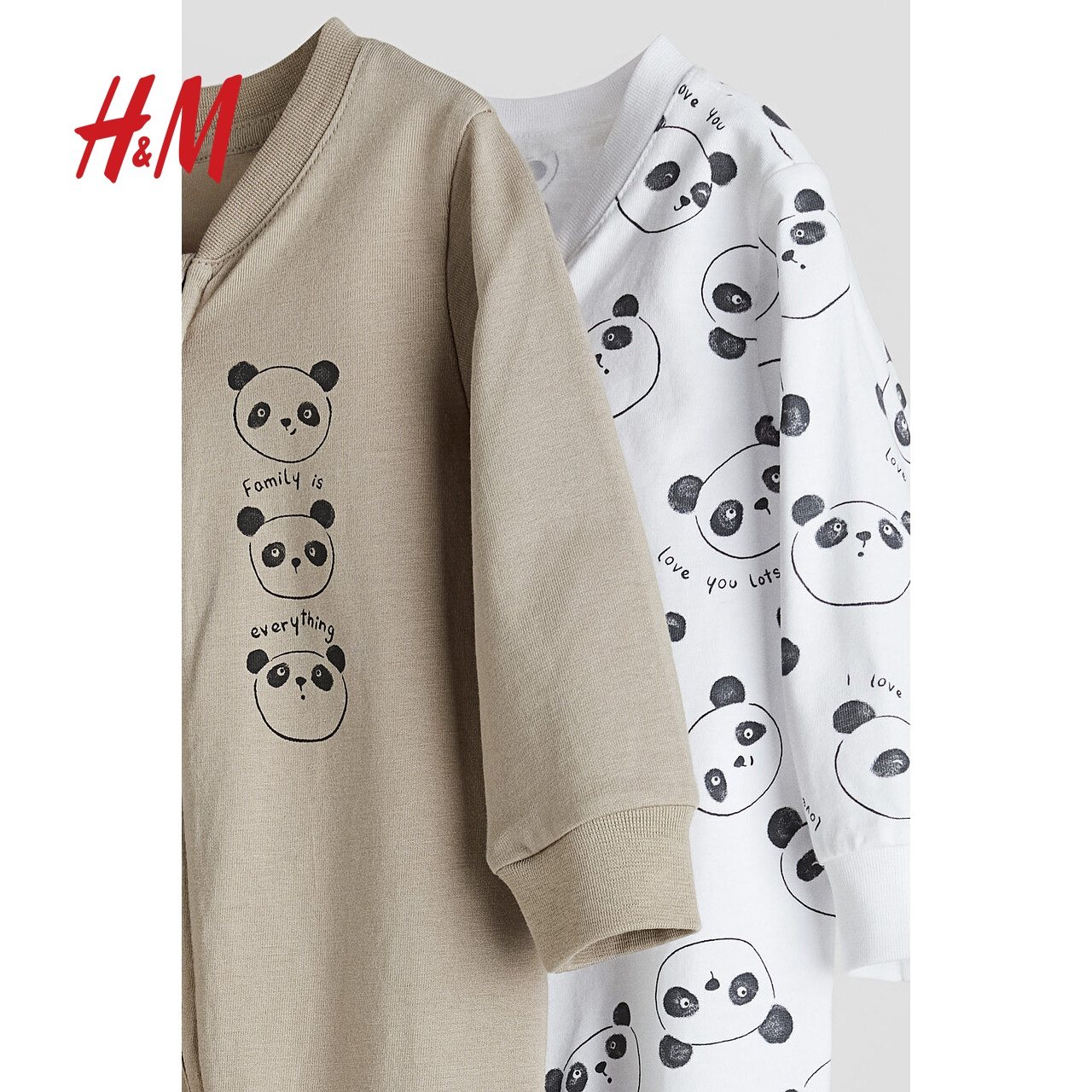 HM冬季童装男婴女婴2件装印花棉质连体睡衣1085413