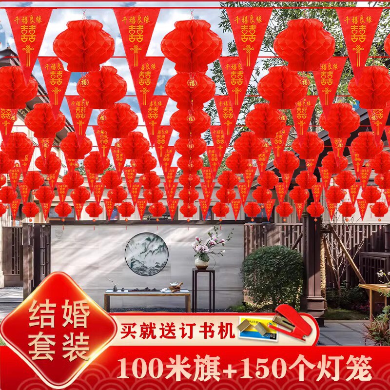 院子装饰结婚彩旗灯笼风车婚礼农村庭院布置喜字拉花婚庆用品大全