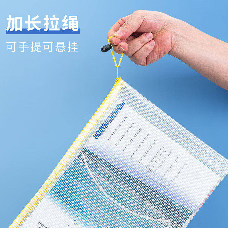 晨光文具学科科目分类袋小学生文件袋拉链式试卷收纳袋透明网纱双层大容量书袋作业资料a4考试专用袋票据产检
