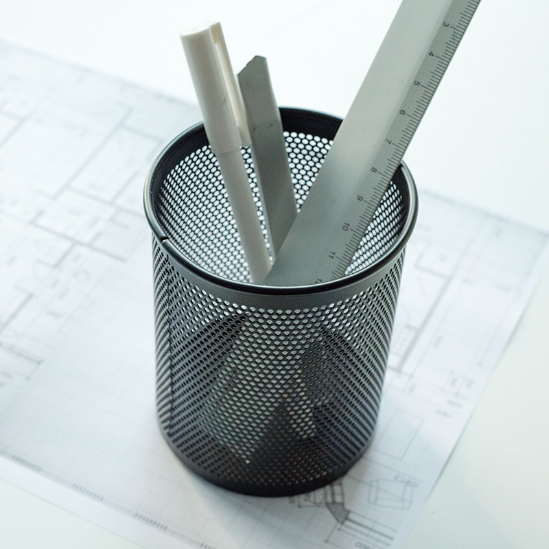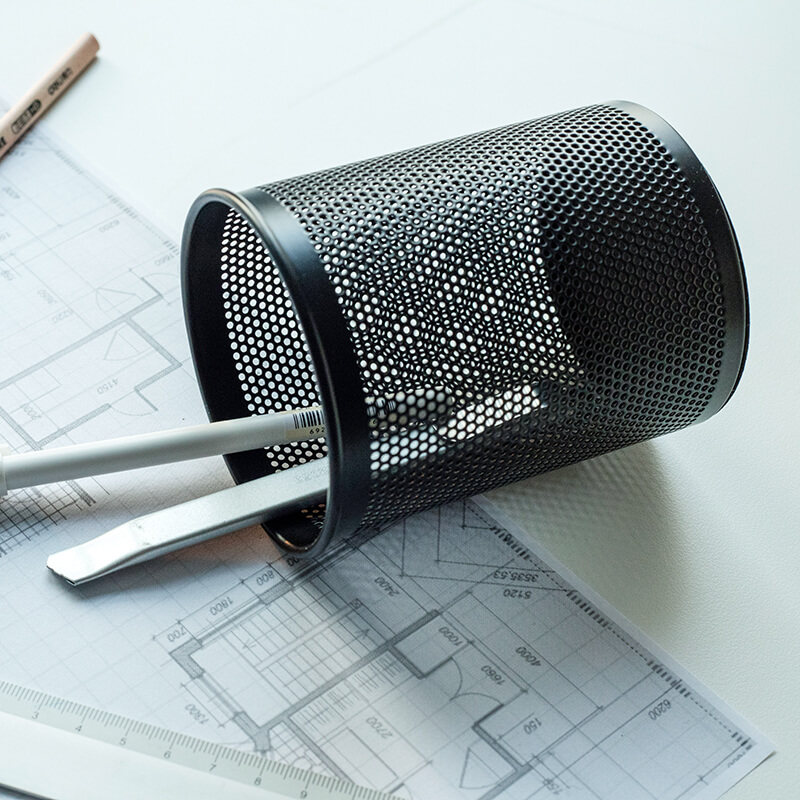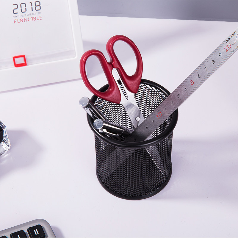 得力笔筒圆形金属网格笔插文具商务笔类收纳简约网纹创意时尚9172