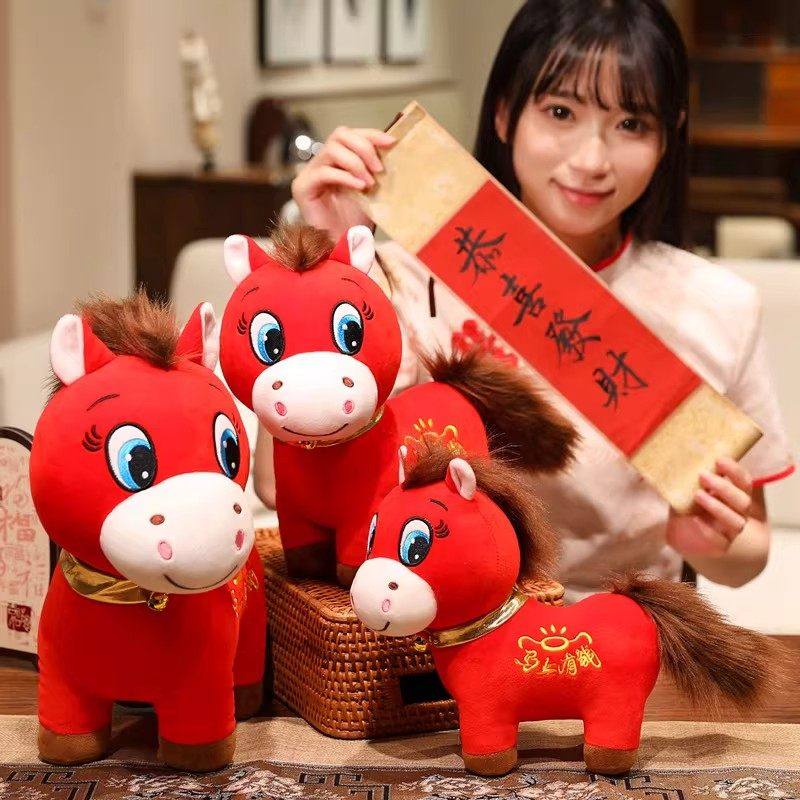 马年吉祥物公仔毛绒玩具红色生肖马玩偶摆件新年活动礼物定制Logo