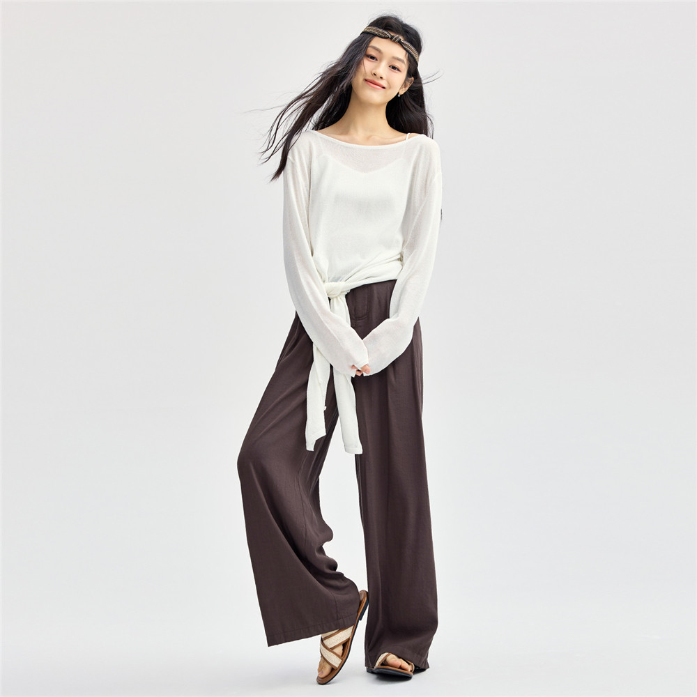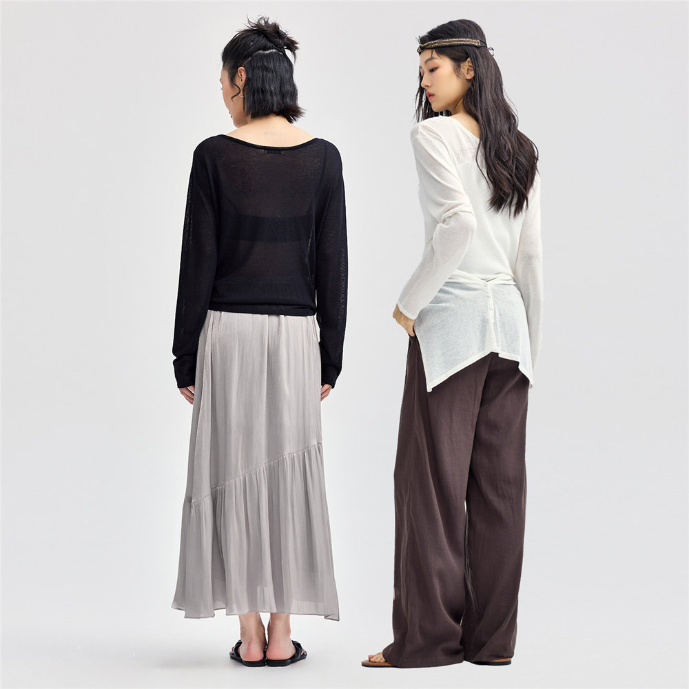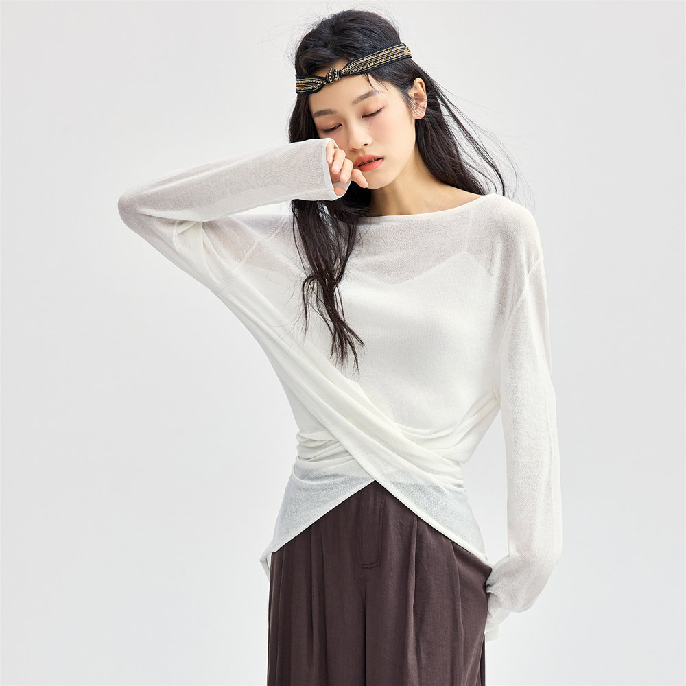 设计师款佐丹奴针织衫女宽松微透一字领长袖防晒针织罩衫18354912