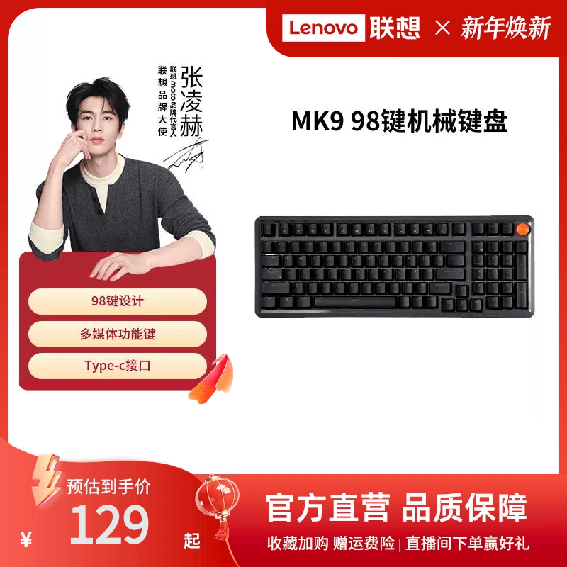 联想MK9机械键盘有线红轴键盘 GASKET结构98配列单光电竞游戏专用