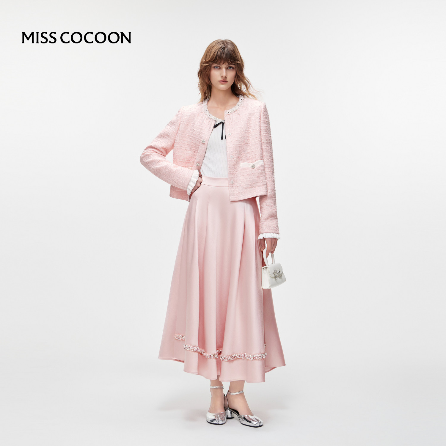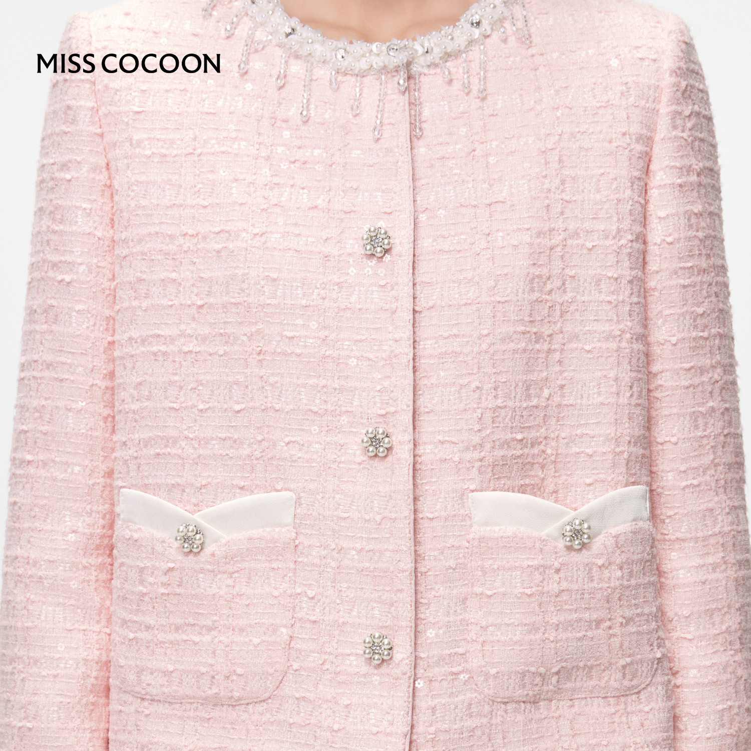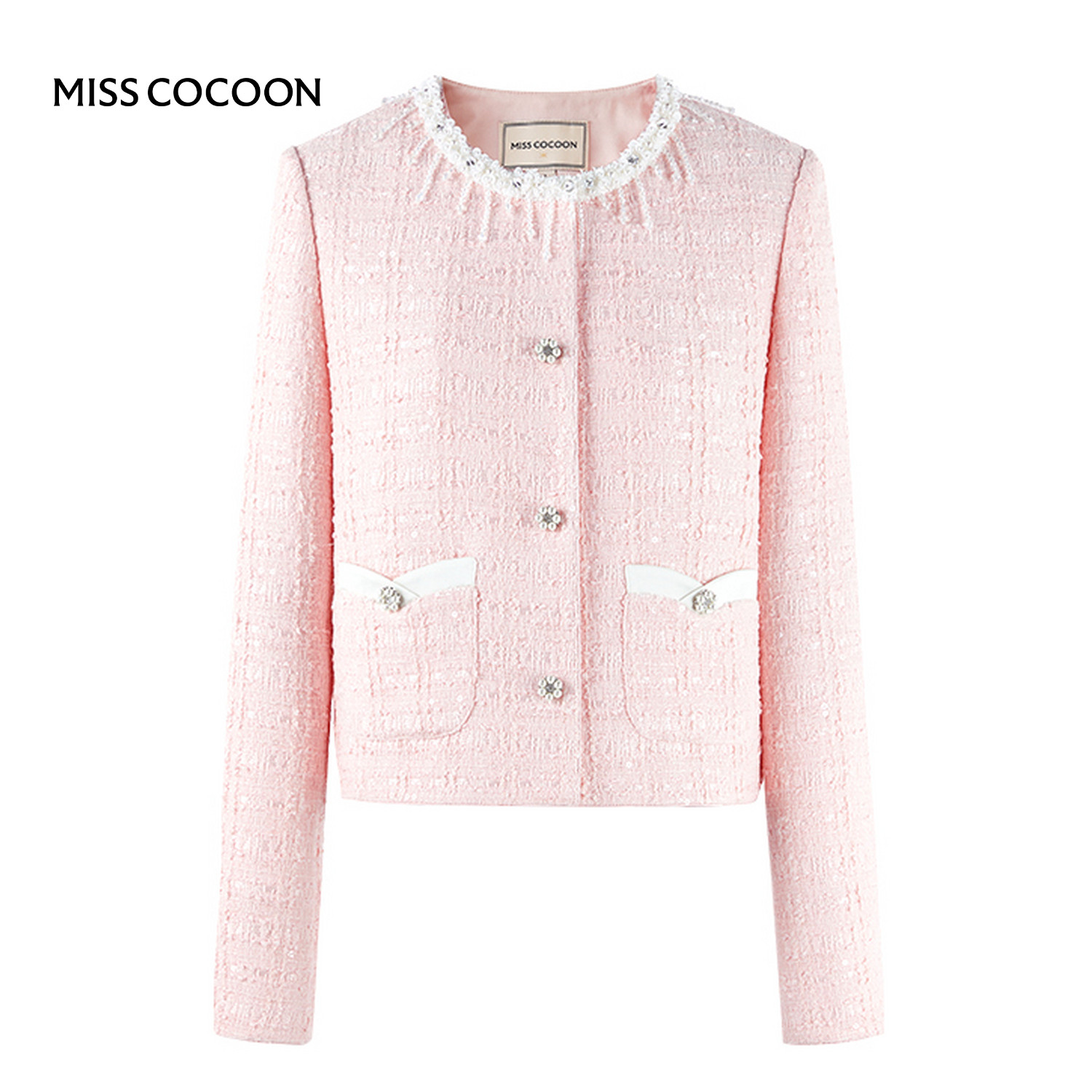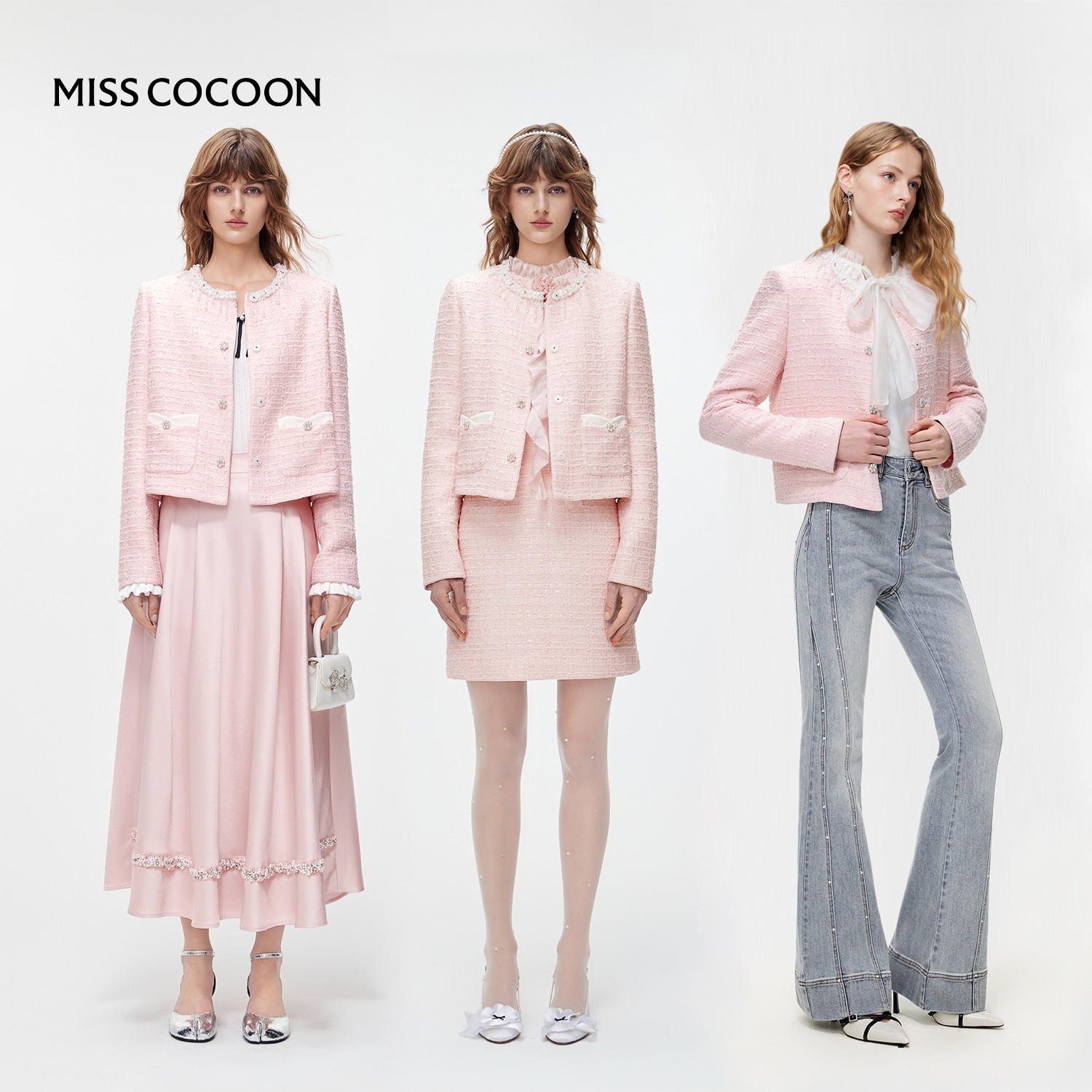 MISSCOCOON可可尼短款上衣女2026春季新款小香风流苏圆领粉色外套