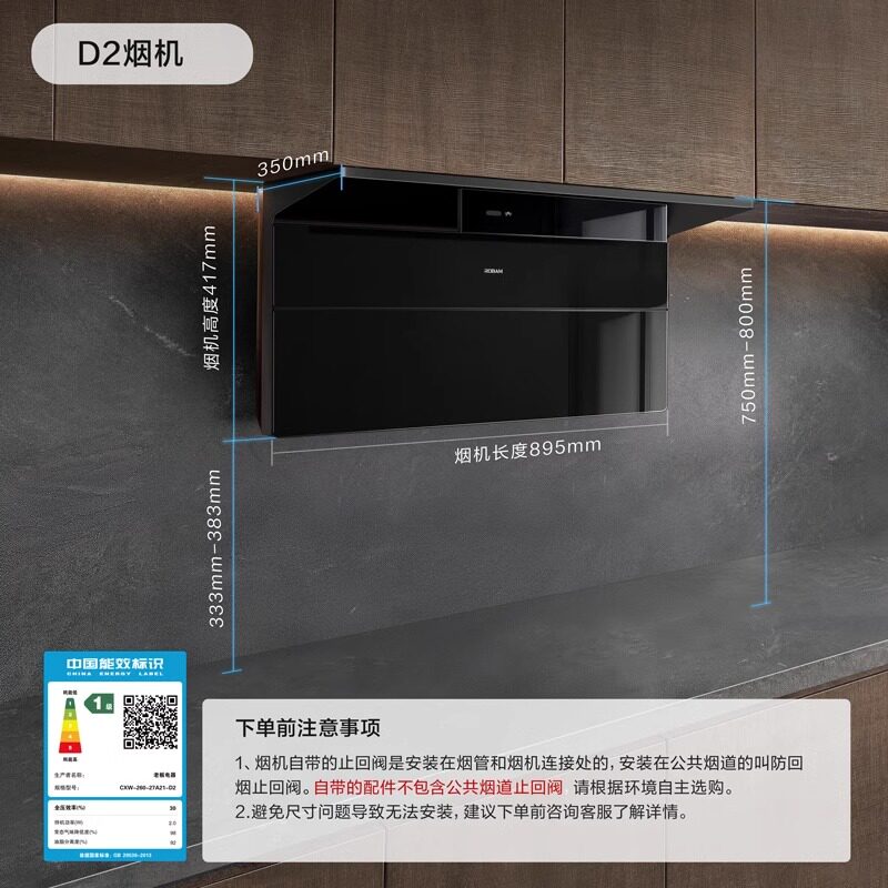 【旗舰新品】老板抽油烟机小黑翼D2顶侧双吸大吸力家用官方旗舰店