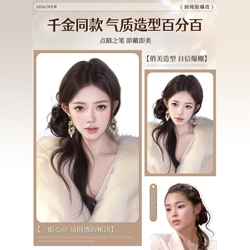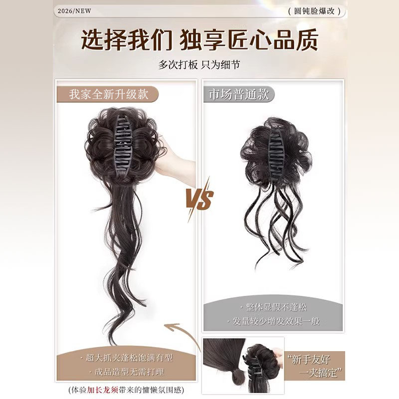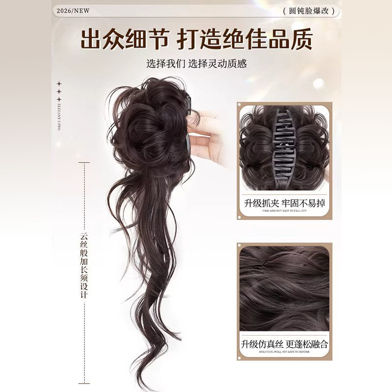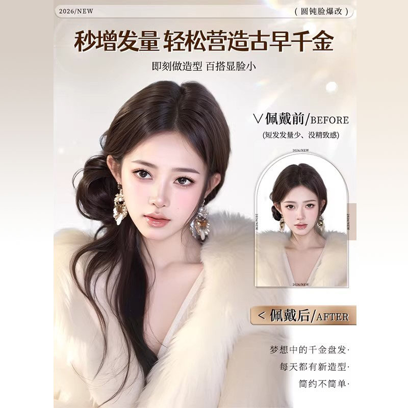 超长龙须丸子头假发抓夹古早感千金风蓬松花苞头发包造型高温丝