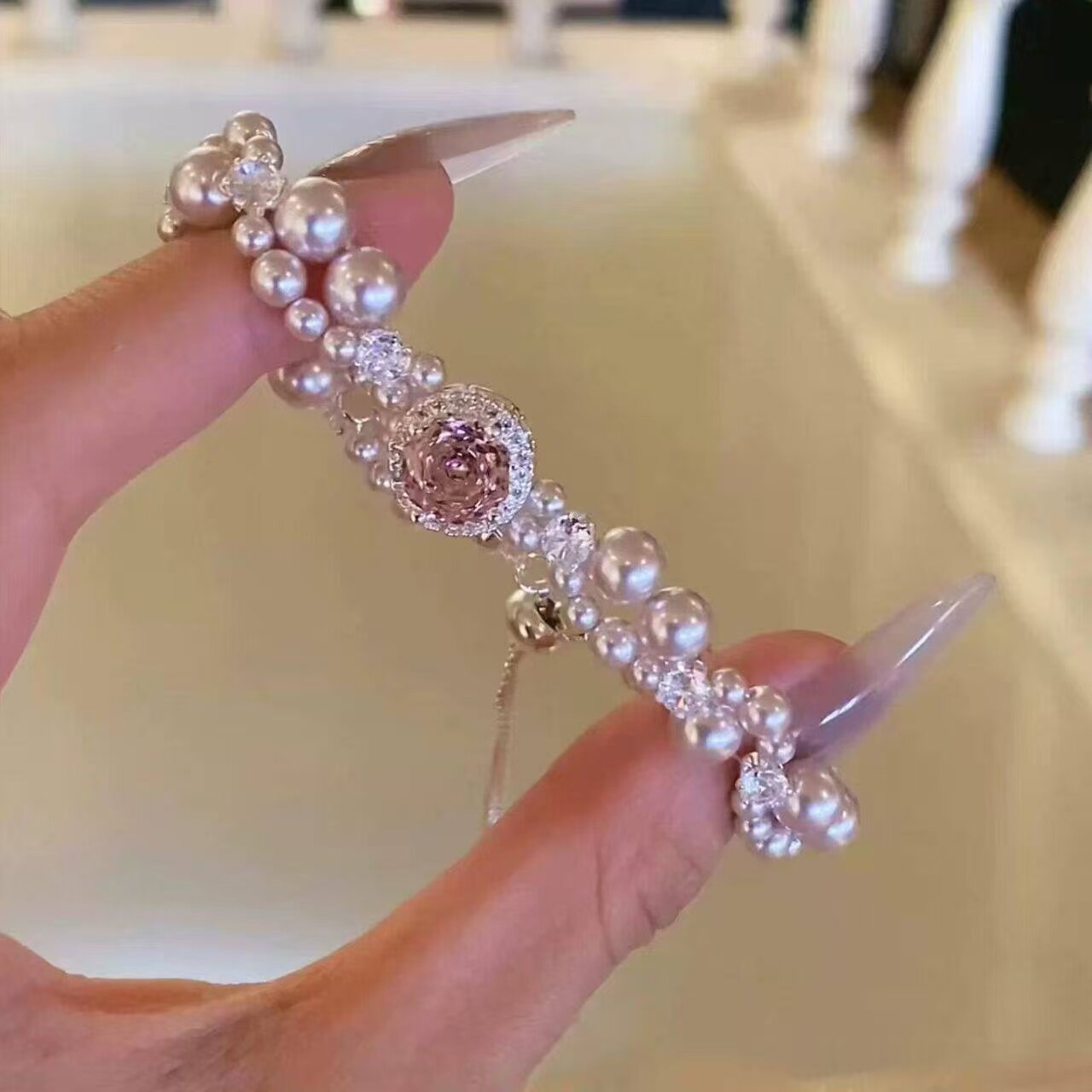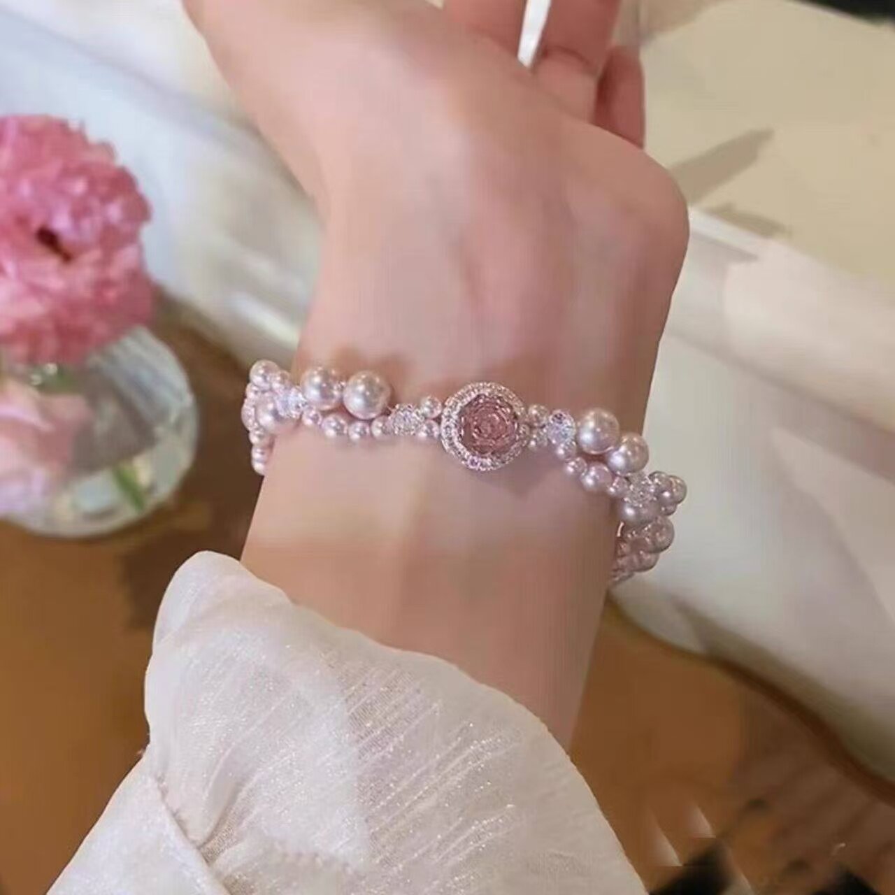 握春波软法式爆闪仿珍珠精致手链女甜美时尚气质高颜值手饰品锆石