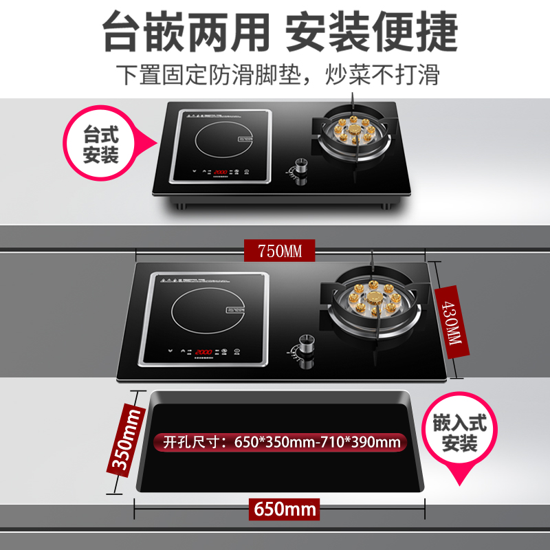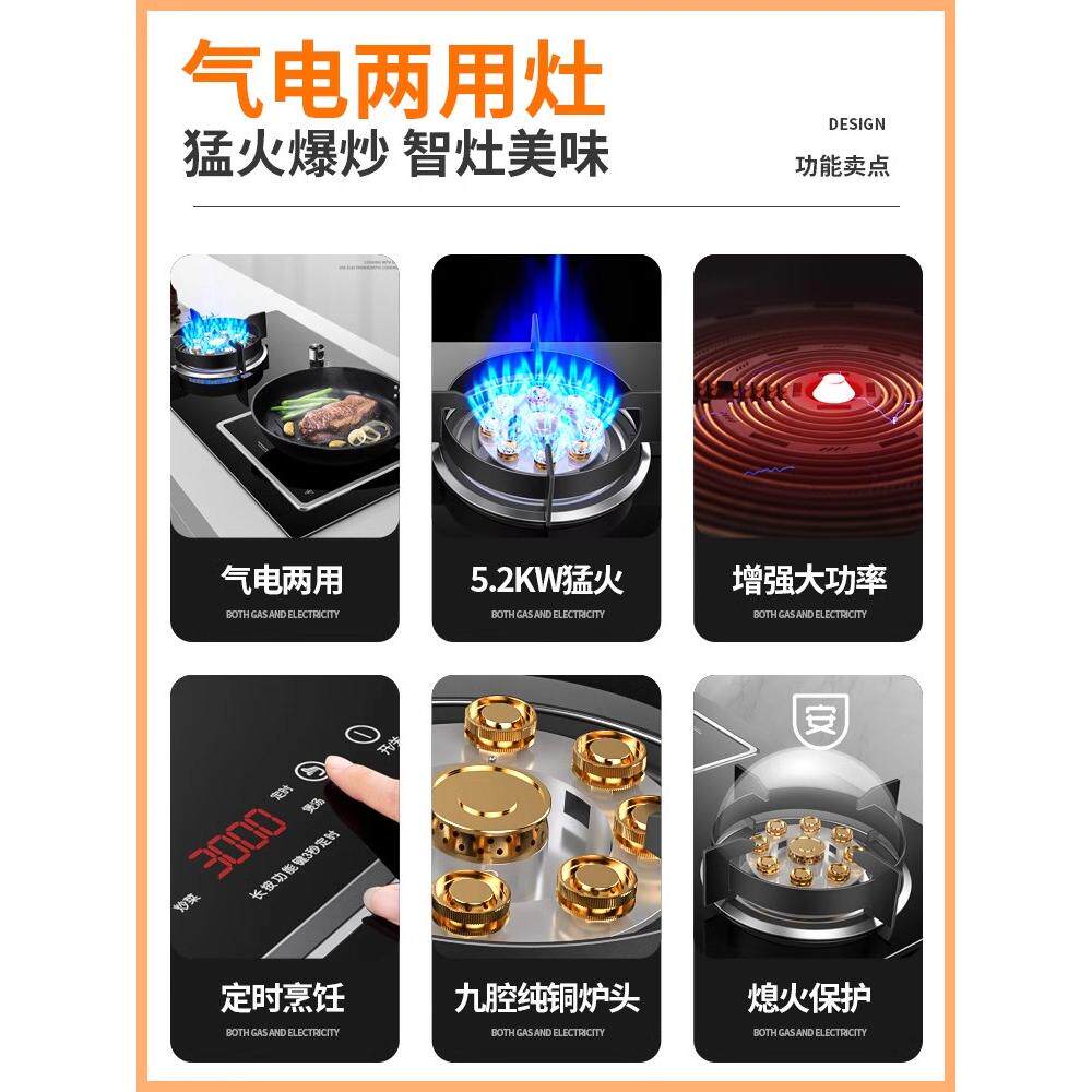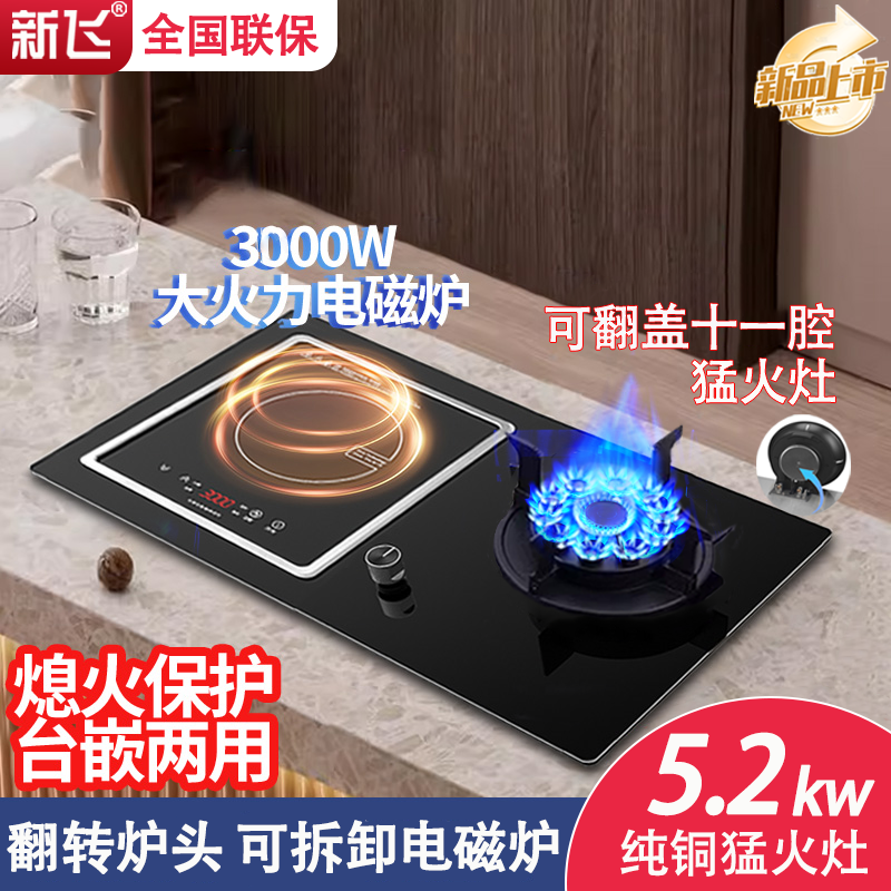 新飞家用气电两用燃气灶台式嵌入式一体电磁炉一气一电猛火煤气灶