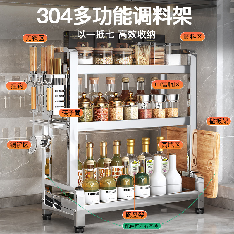 德国厨房置物架不锈钢调味架刀架储物架台面多层调味品收纳架筷子