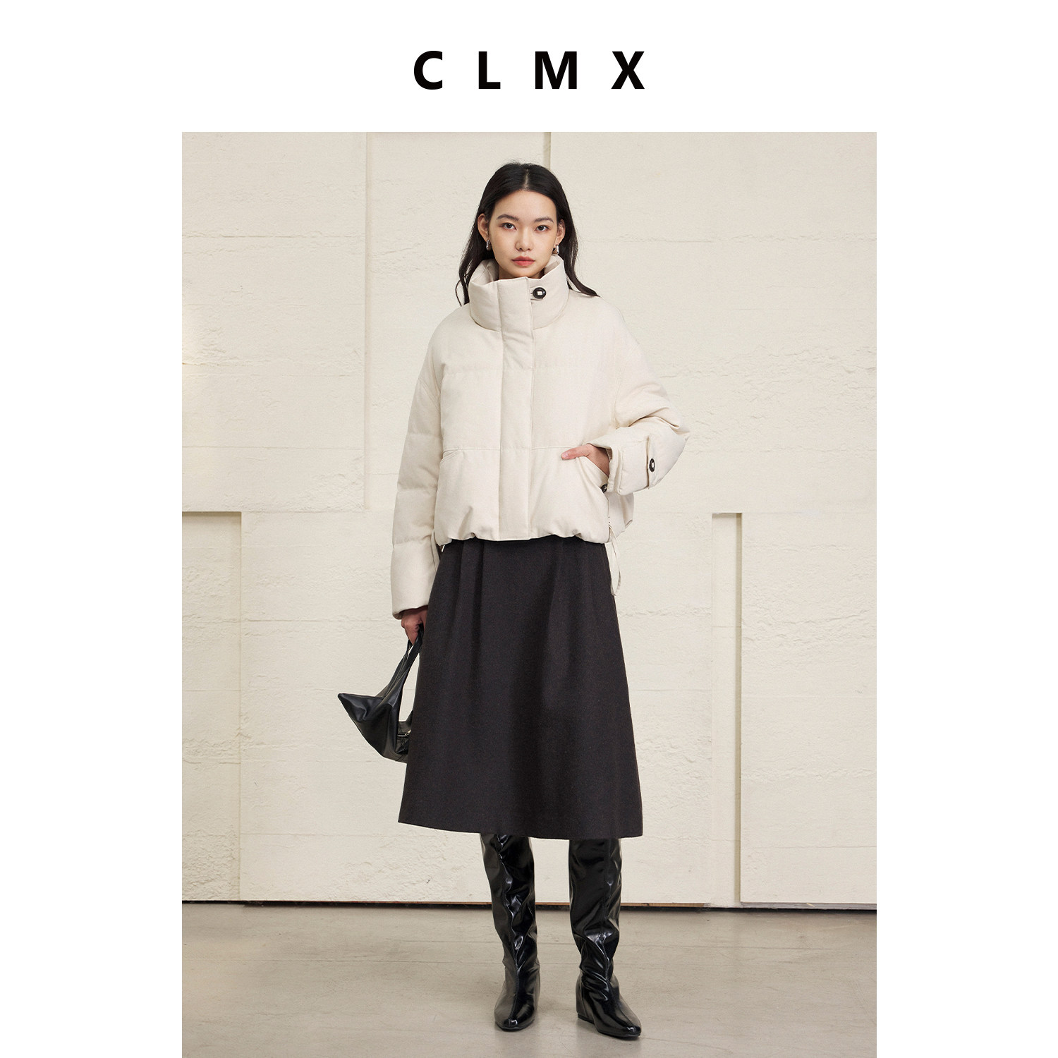 CLMX经典立领塑气质时装感短款显瘦白鸭绒立领廓形小泡芙羽绒服