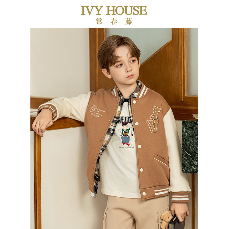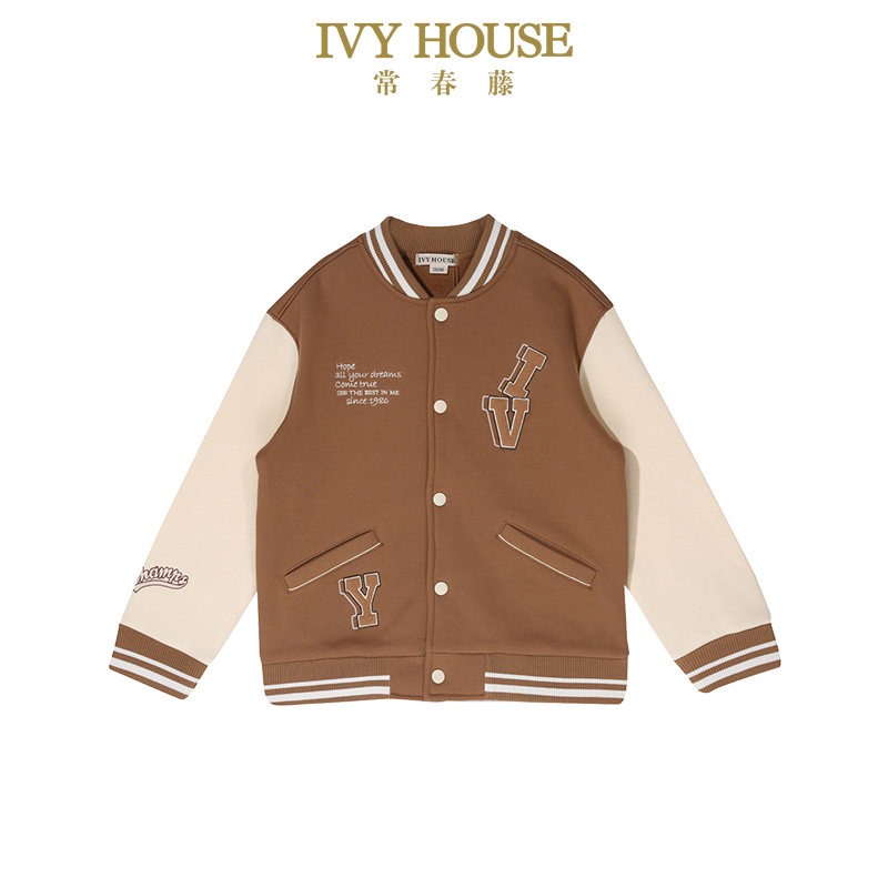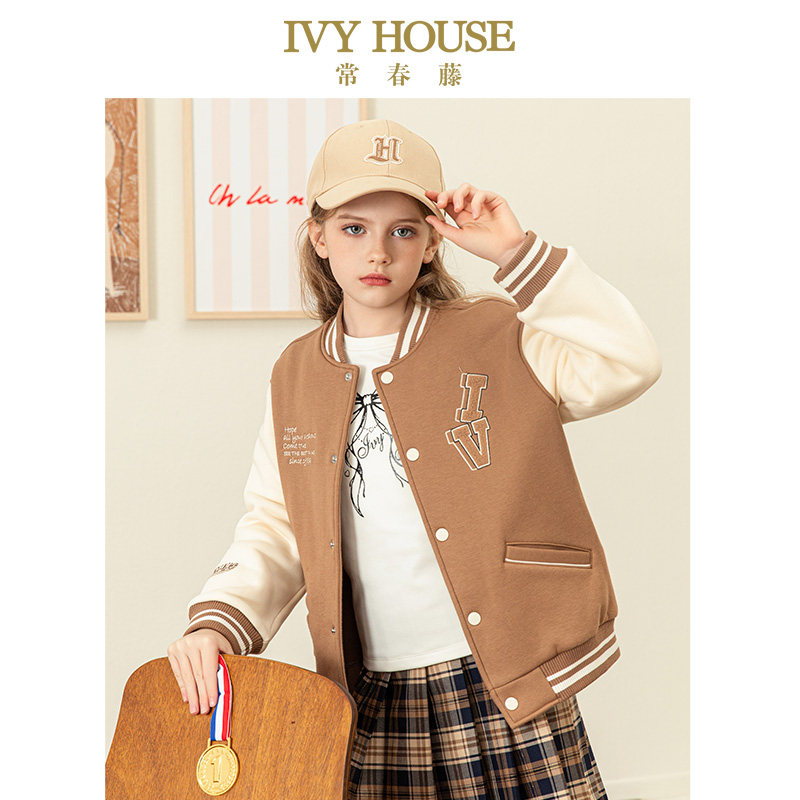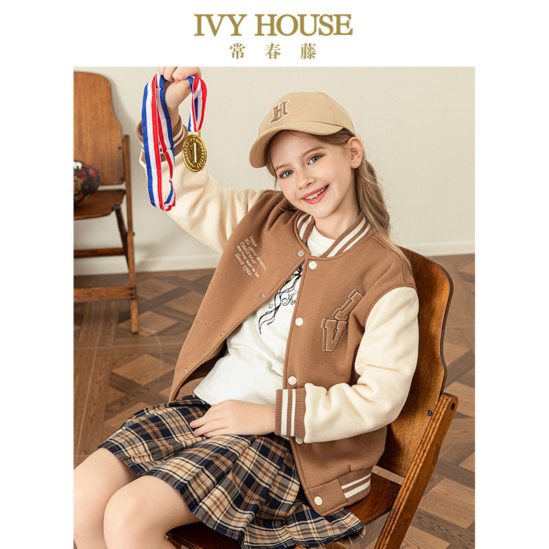 IVY HOUSE常春藤儿童装男女童冬季款 针织棒球外套加绒保暖亲子装